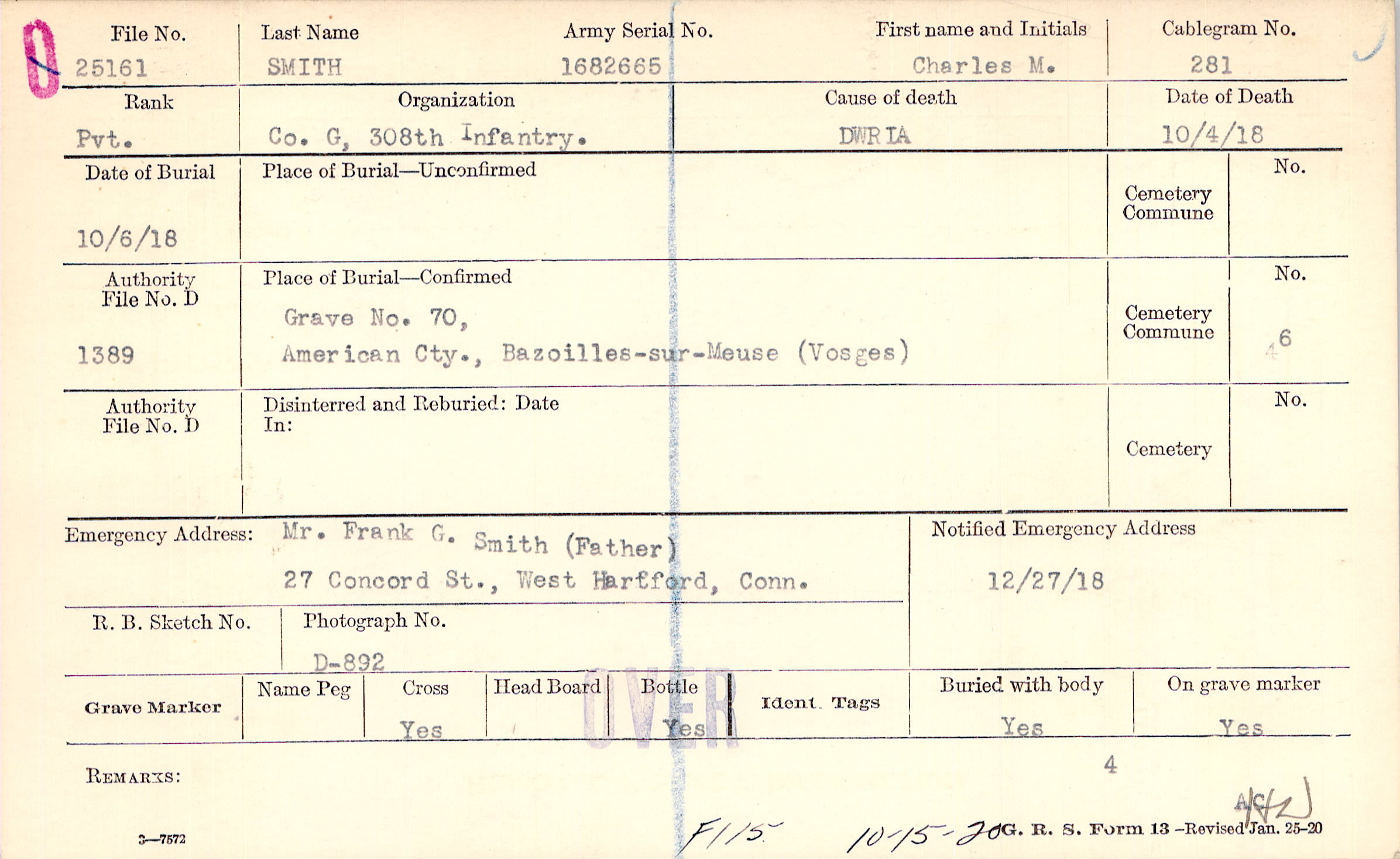 Mr. Frank G. Smith (Father), 27 Concord St., West Hartford, Conn.