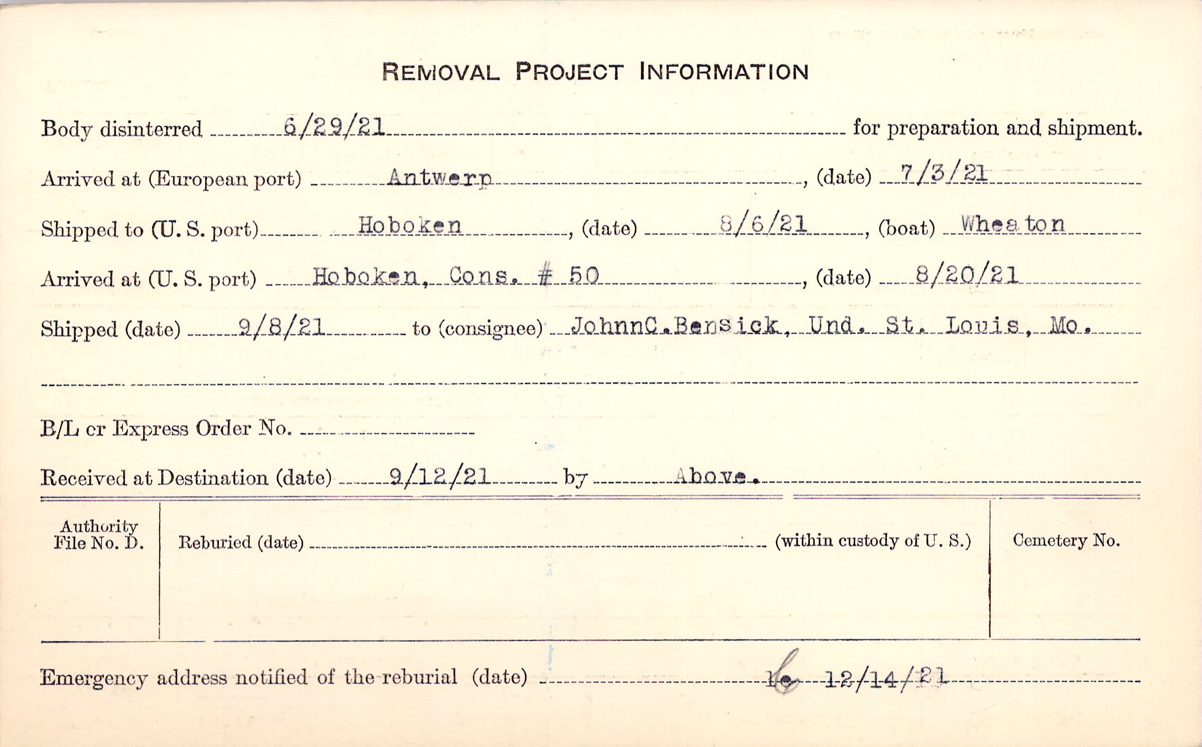 to Johnn C. Bensick, Und., St. Louis, Mo.