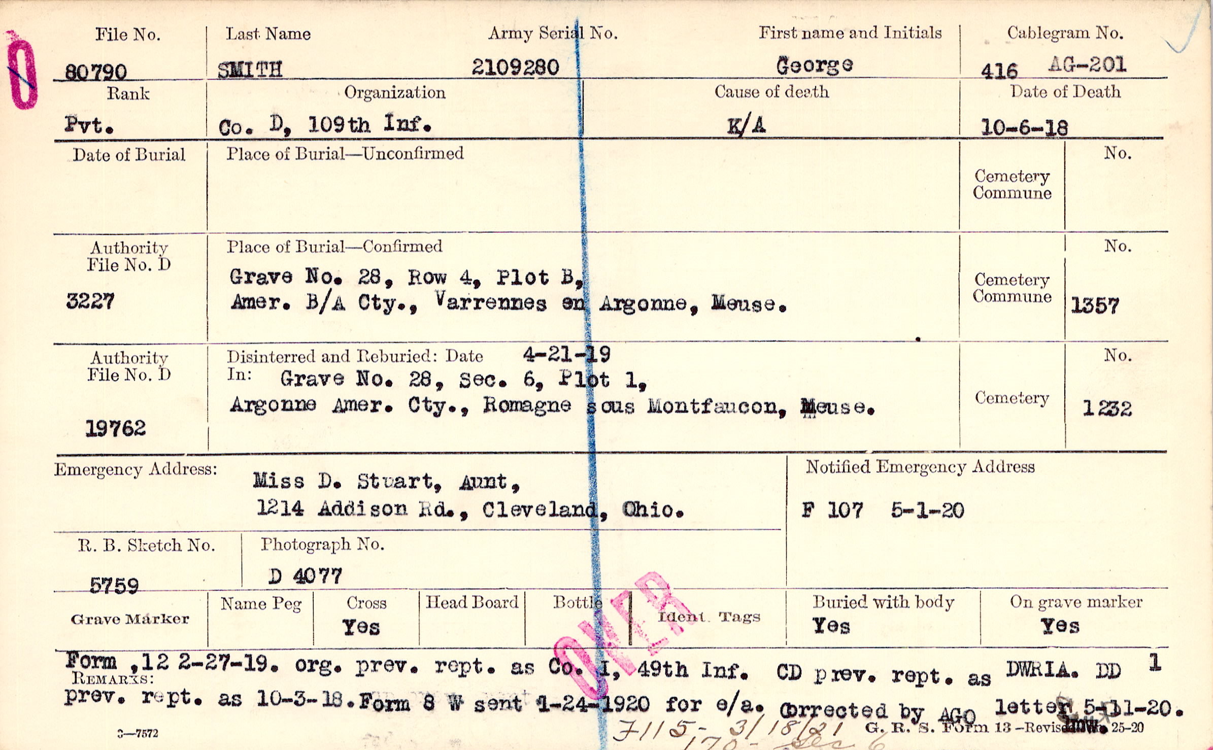 Grave 28, Row 4, Plot B, Amer. B/A Cty., Varrennes en Argonne, Meuse