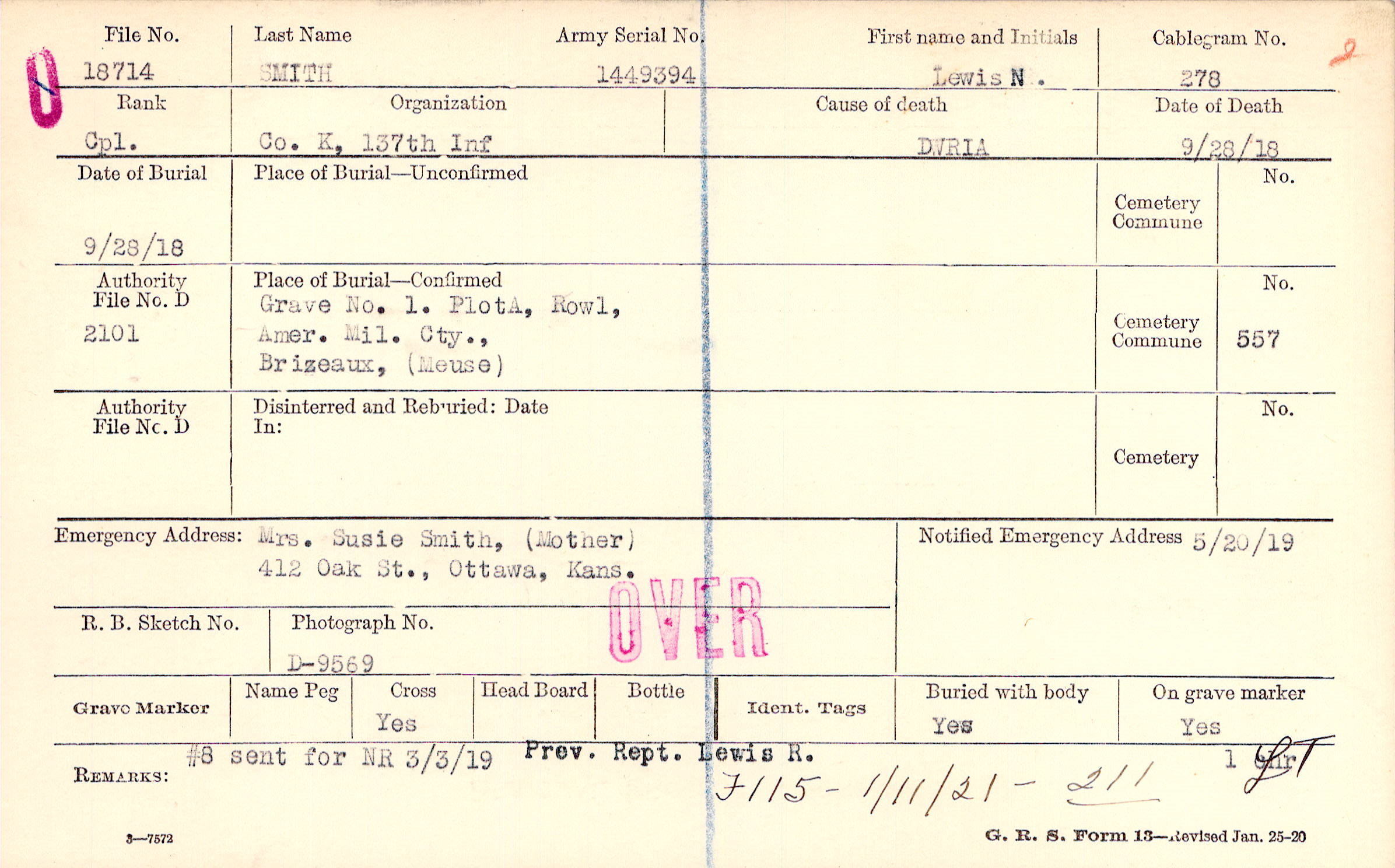 Mrs. Susie Smith, (Mother), 412 Oak St., Ottawa, Kans.