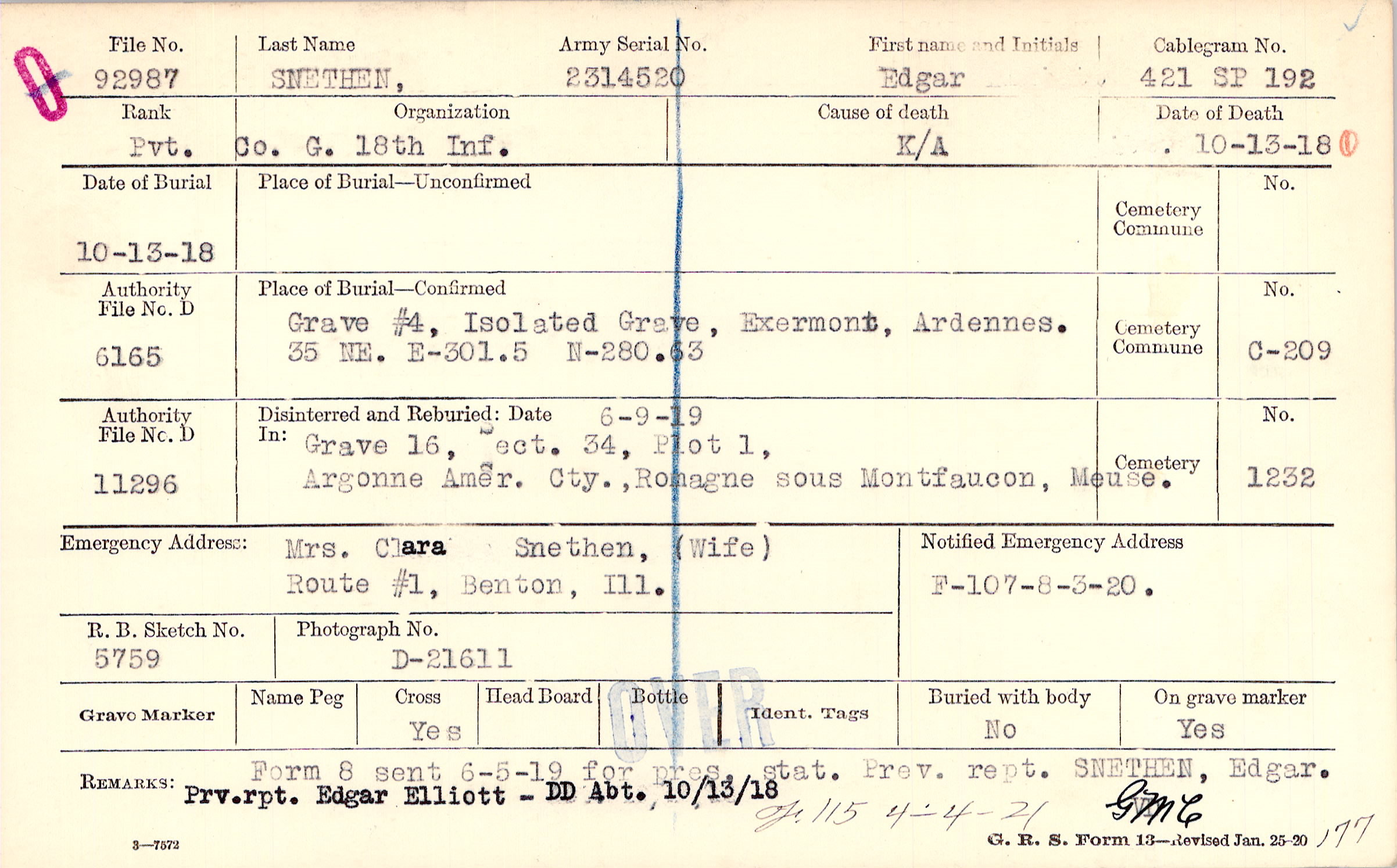 Prev. rept. SNETHEN, Edgar. Prv. rpt. Edgar Elliott - DD Abt. 10/13/18, Form 8 sent 6-5-19 for pres. stat., F115 4-4-21