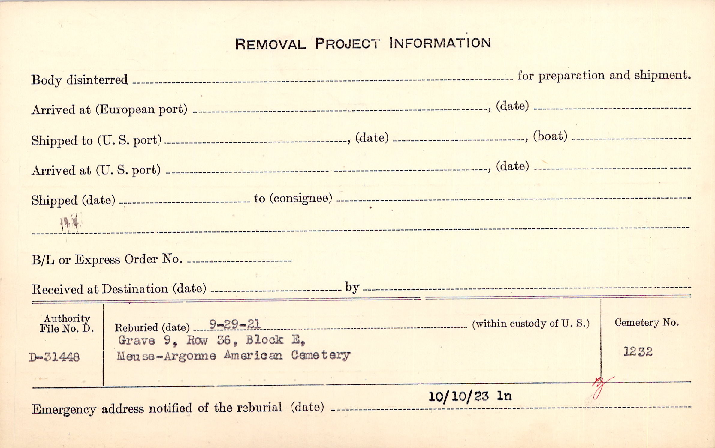 Grave 111, Section 97, Plot 3, Argonne American Cemetery, Romagne-sous-Montfaucon, Meuse