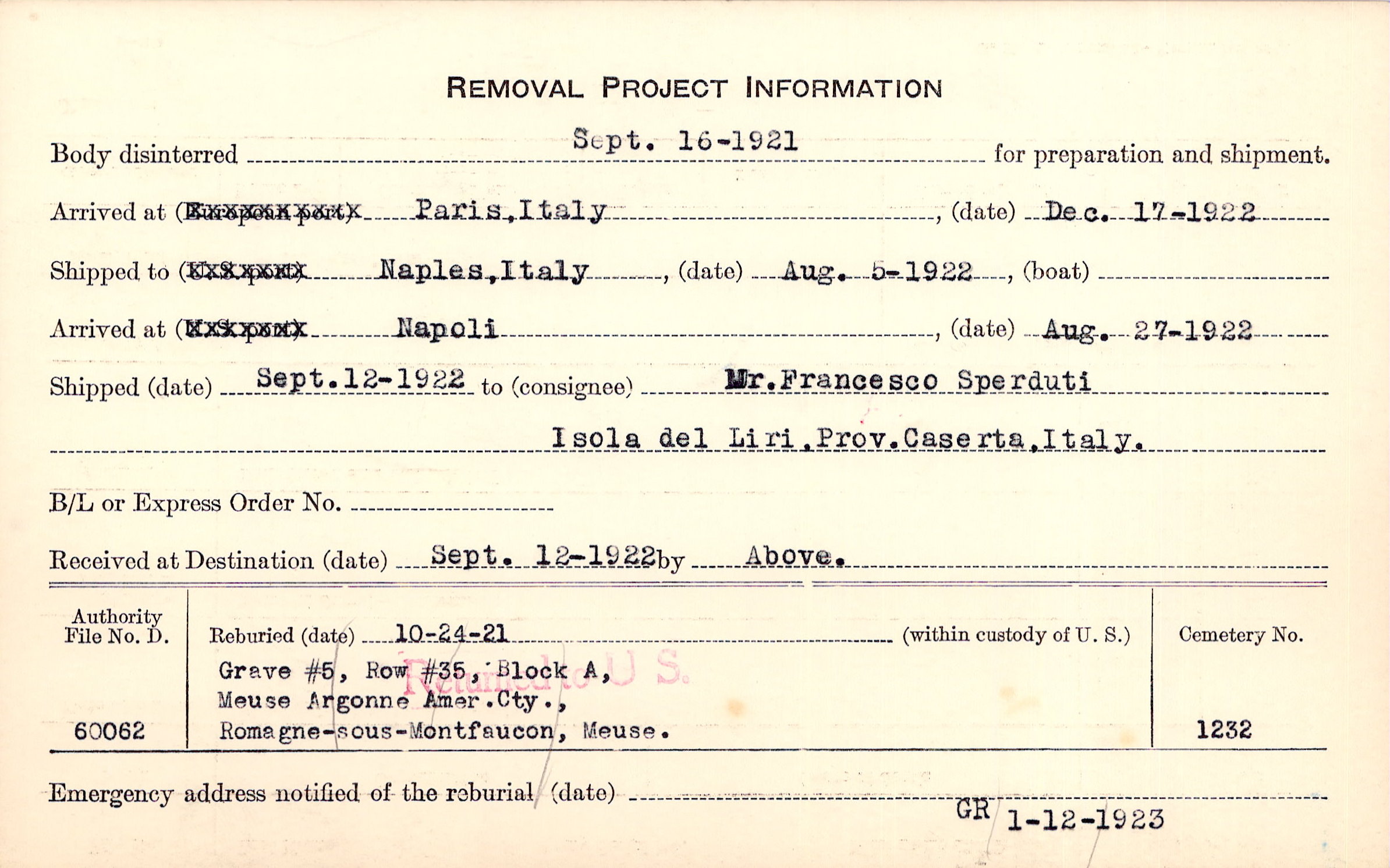 to Mr. Francesco Sperduti, Isola del Liri ,Prov. Caserta ,Italy