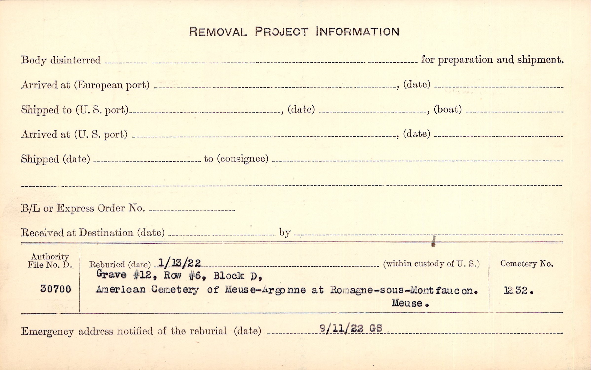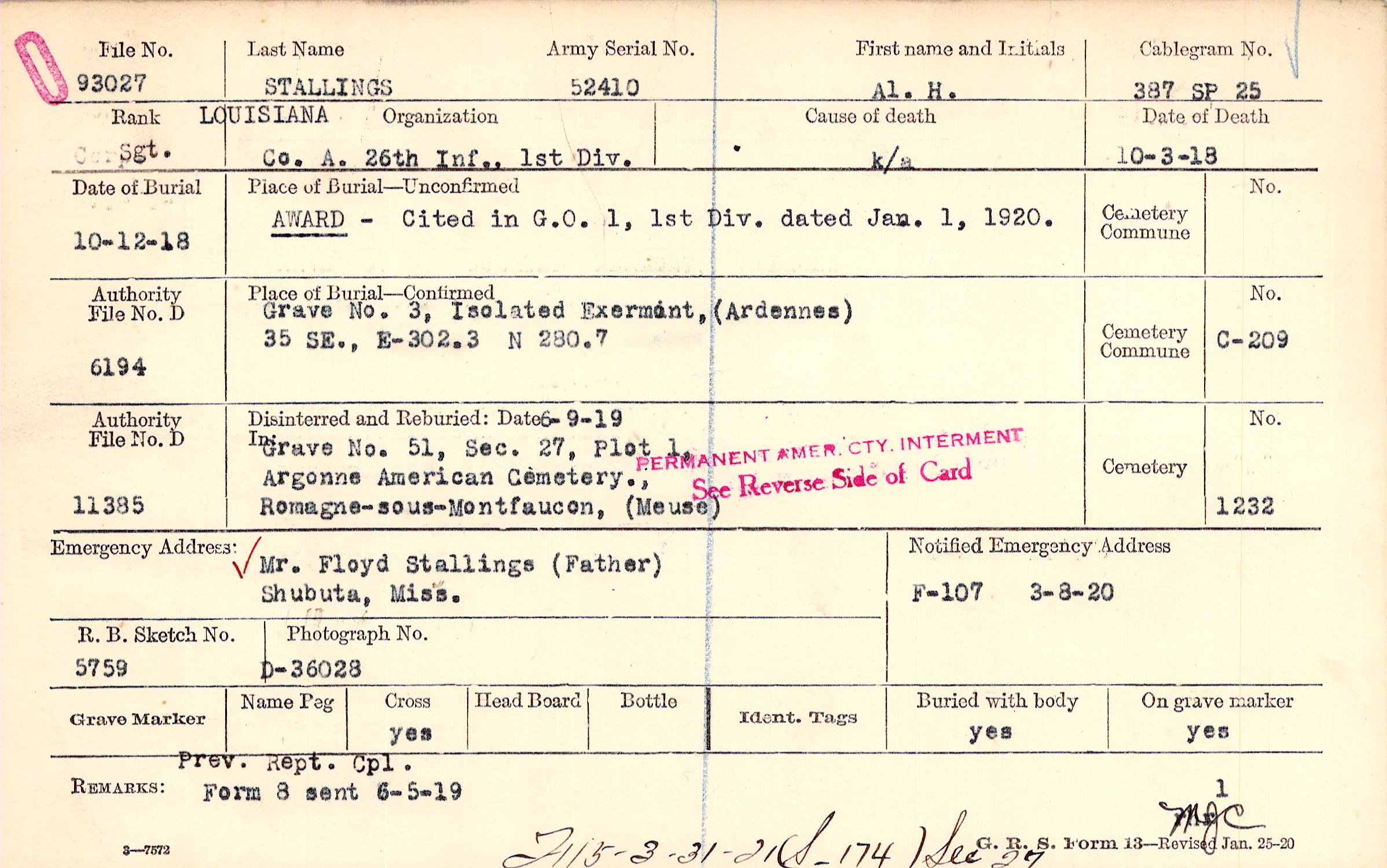 Grave 51, Section 27, Plot 1, Argonne American Cemetery, Romagne-sous-Montfaucon, Meuse