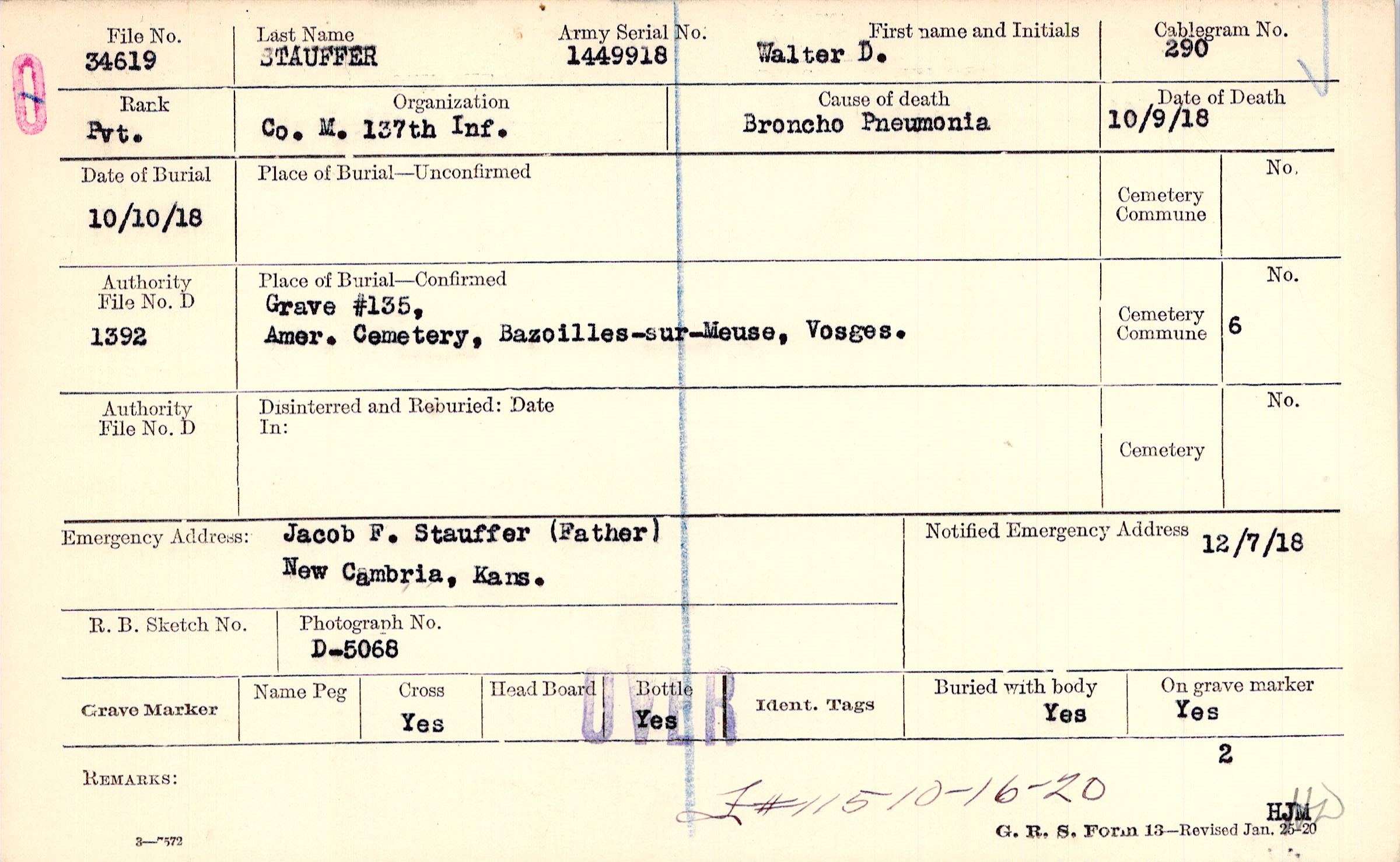 Grave #135, Amer. Cemetery, Bazoilles-sur-Meuse, Vosges