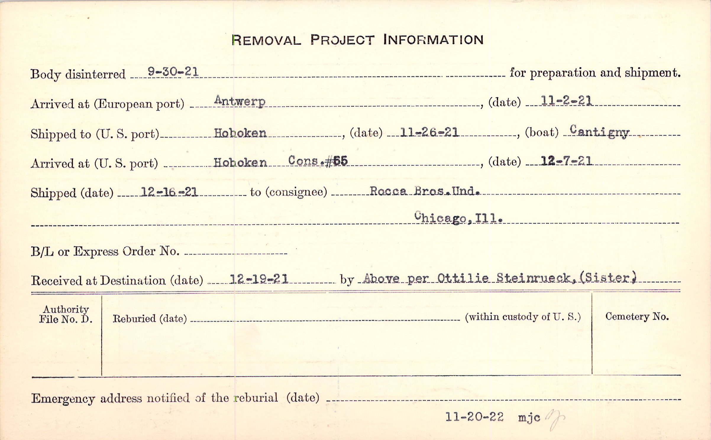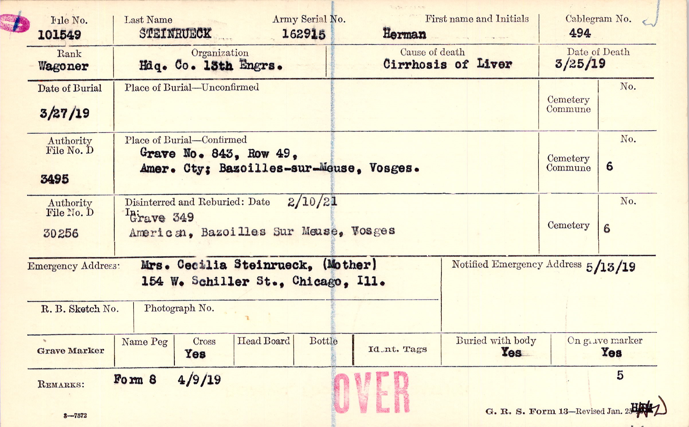 Mrs. Cecilia Steinrueck, (Mother), 154 W. Schiller St., Chicago, Ill.