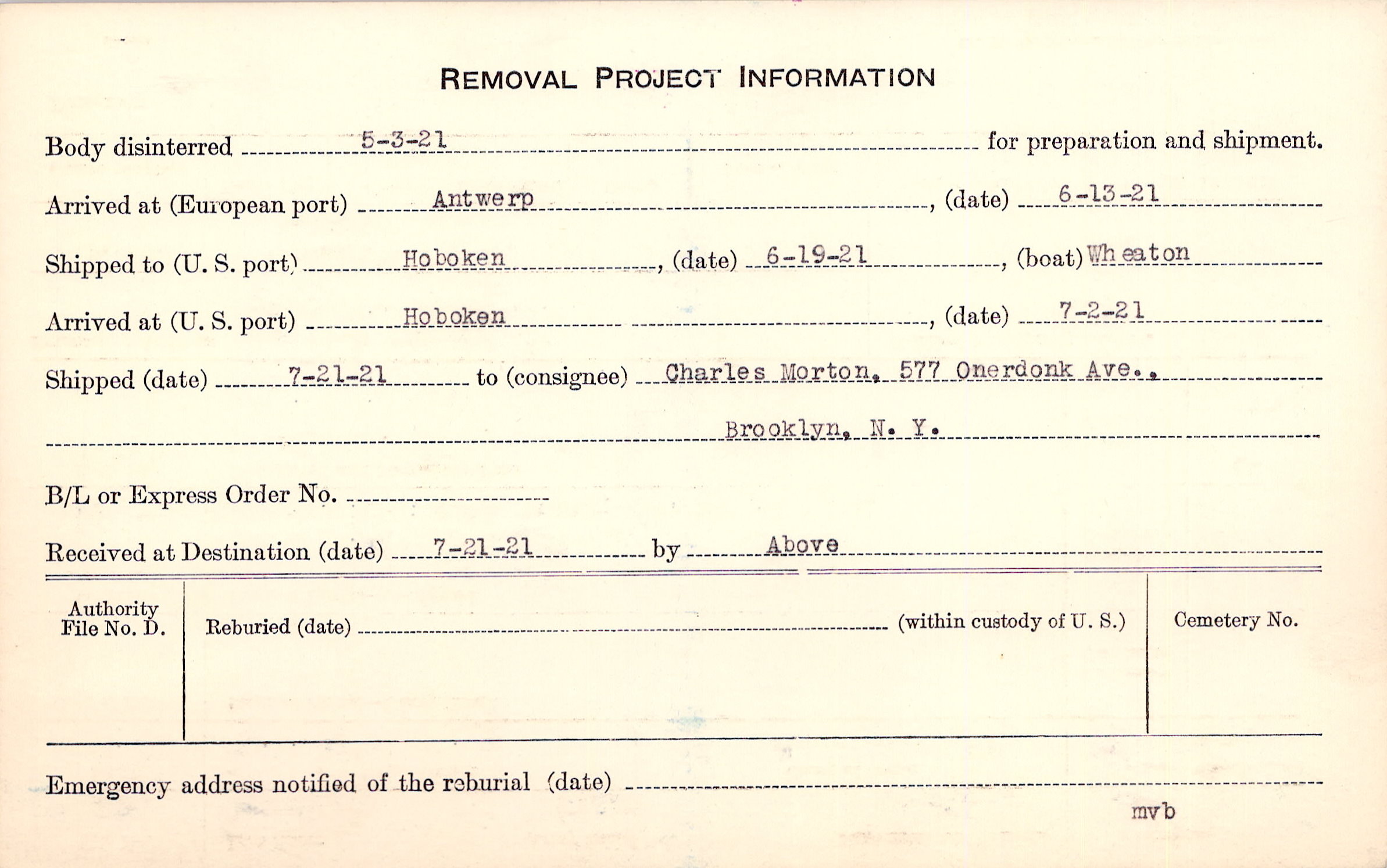 to Charles Morton, 577 Onerdonk Ave., Brooklyn, N.Y.