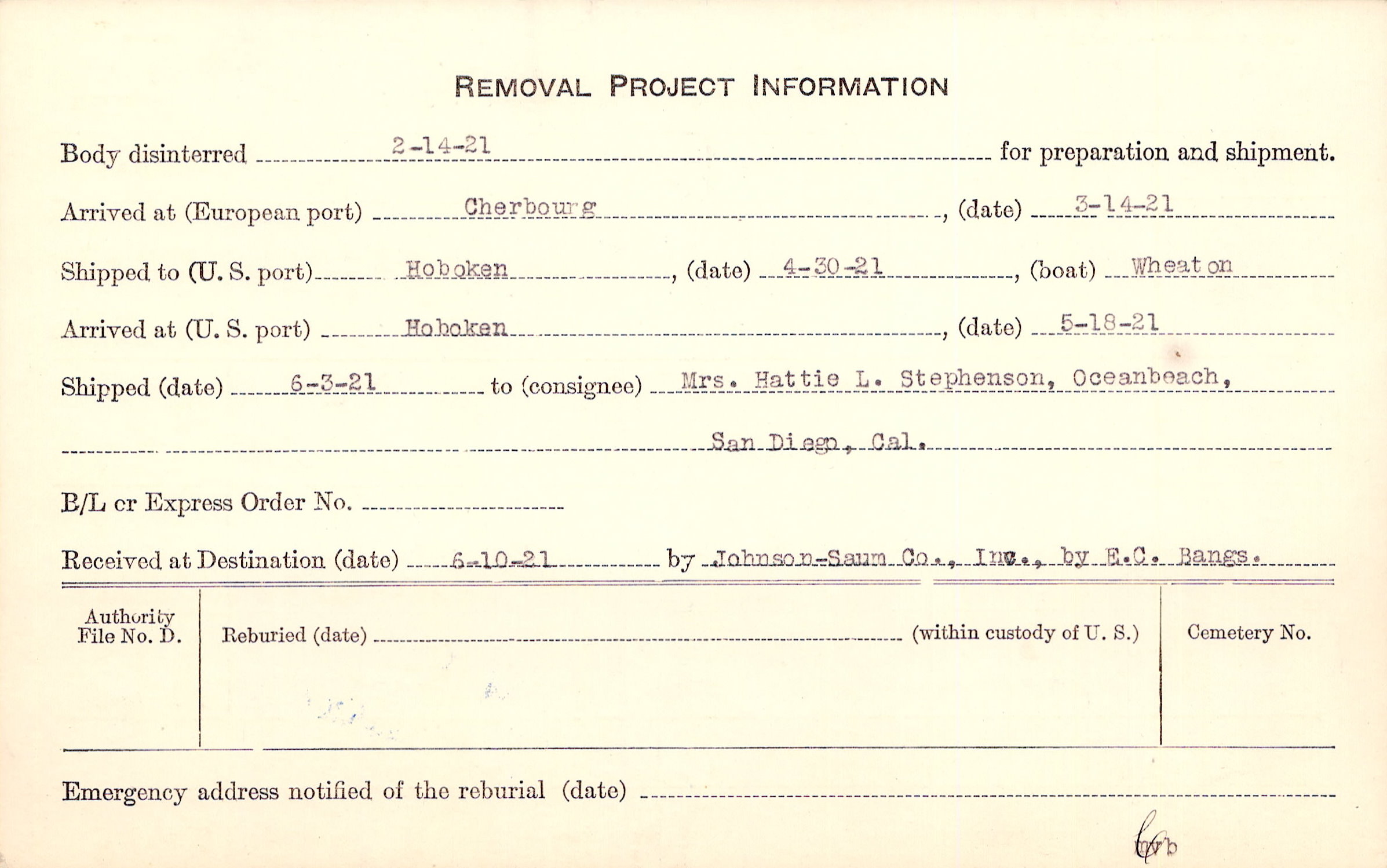 to Mrs. Hattie L. Stephenson, Oceanbeach, San Diego, Cal.