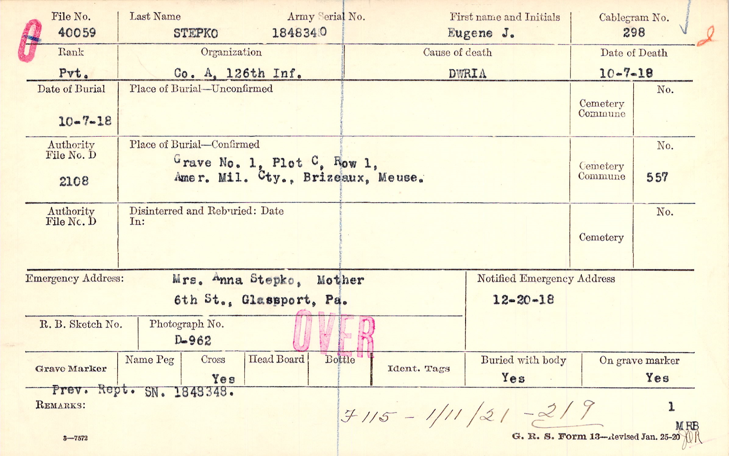 to Joseph Stepko, 611 Indiana Ave., Glassport, Pa.