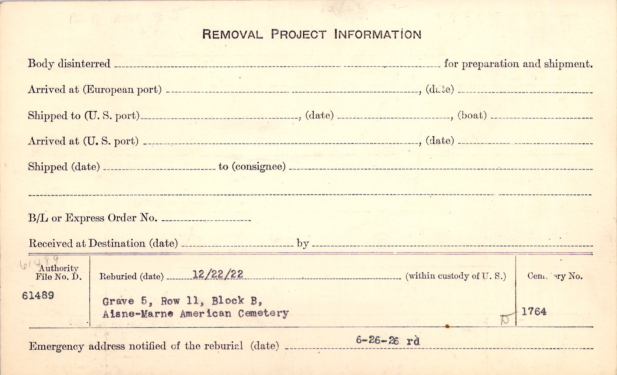 | Reburied (date): |