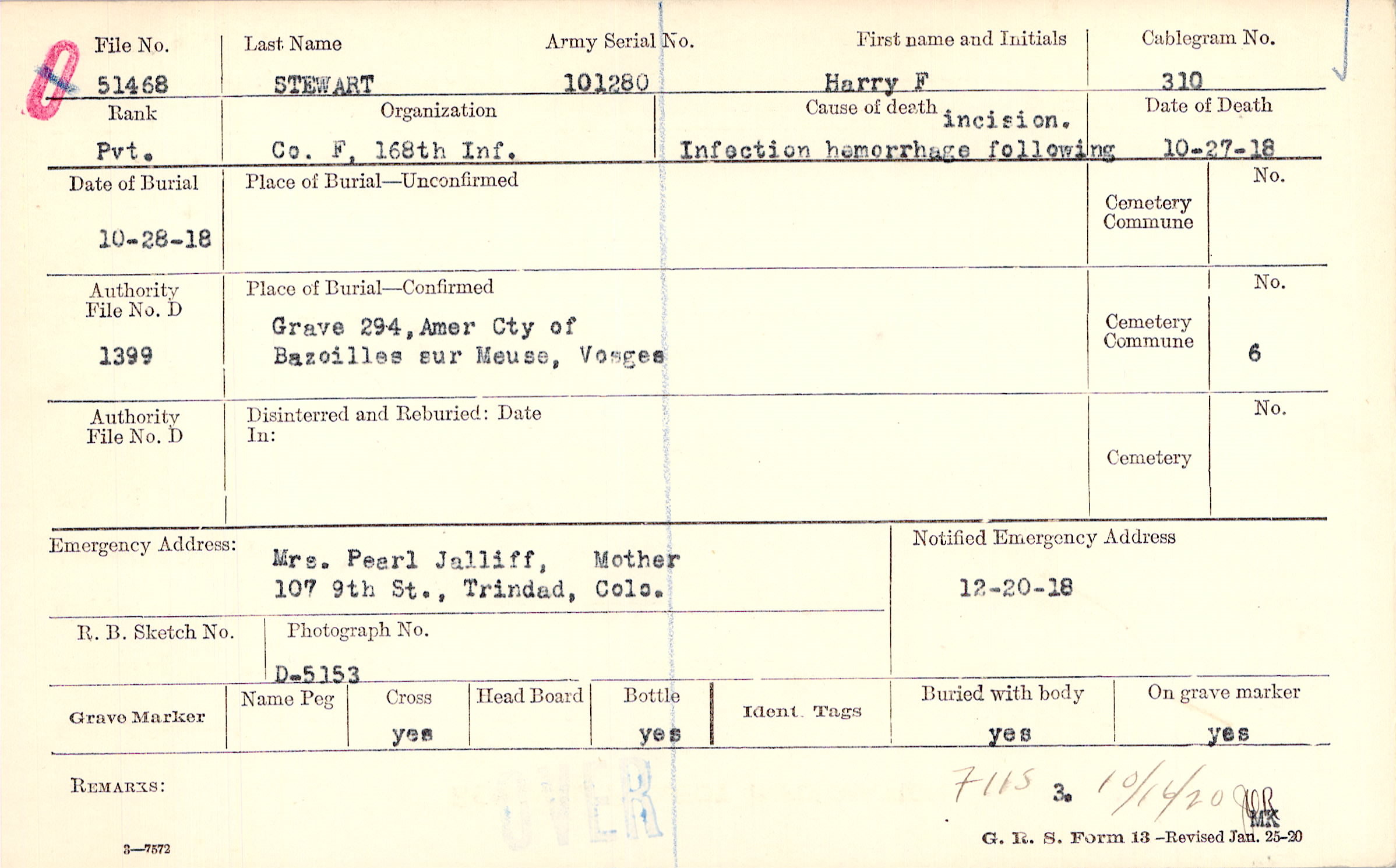 Mrs. Pearl Jalliff, Mother, 107 9th St., Trindad, Colo.