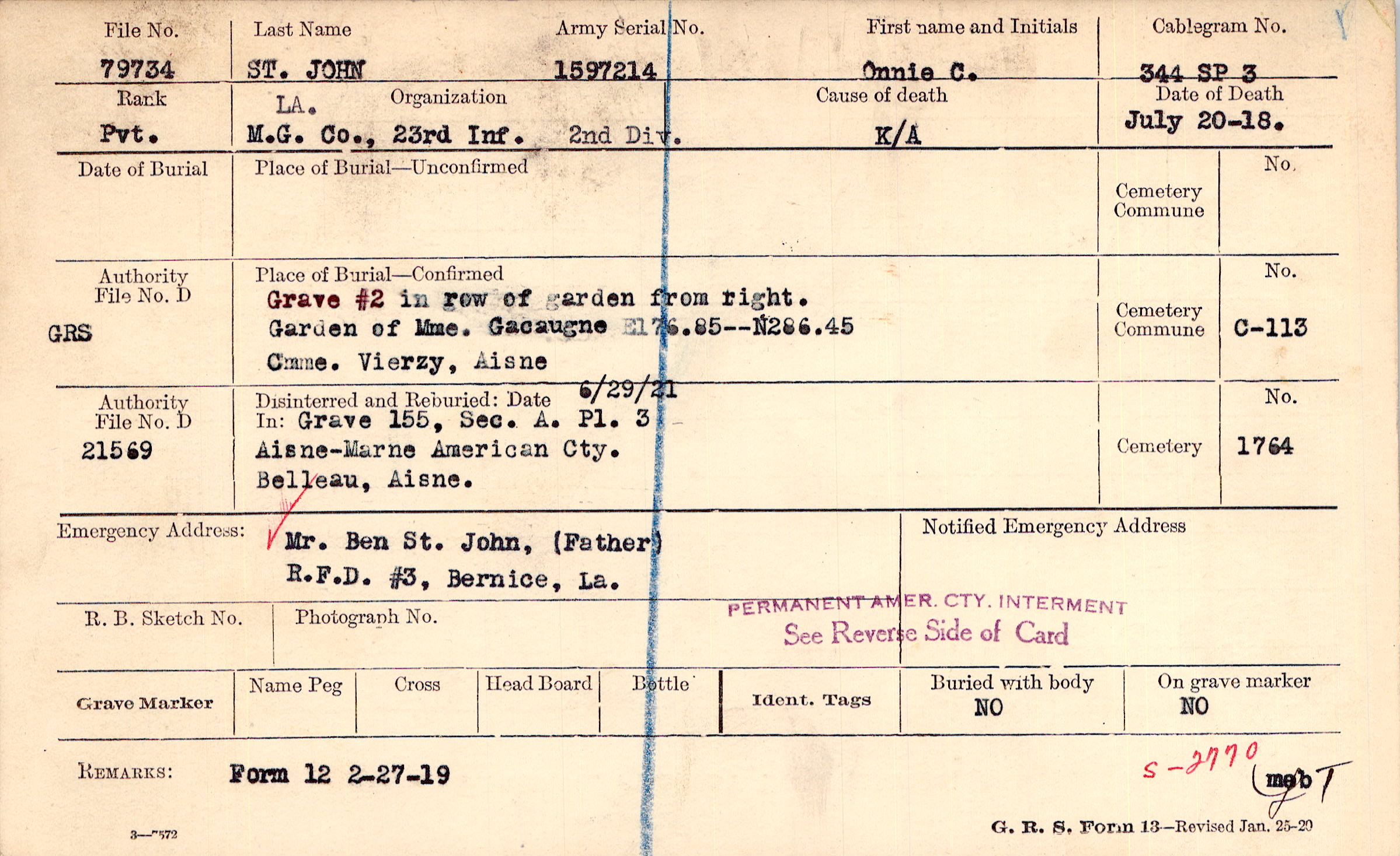 Grave #2, in row of garden from right., Garden of Mme. Gacaugne, Cmme., Vierzy, Aisne