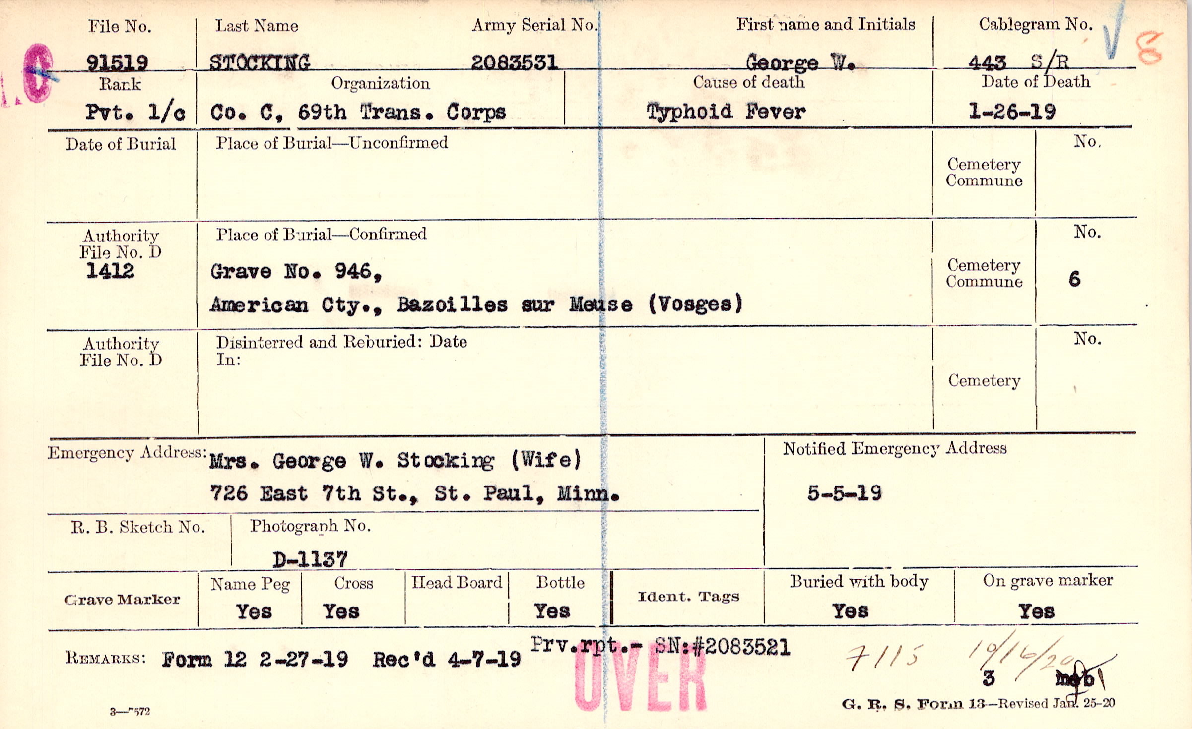 Mrs. George W. Stocking (Wife), 726 East 7th St., St. Paul, Minn.
