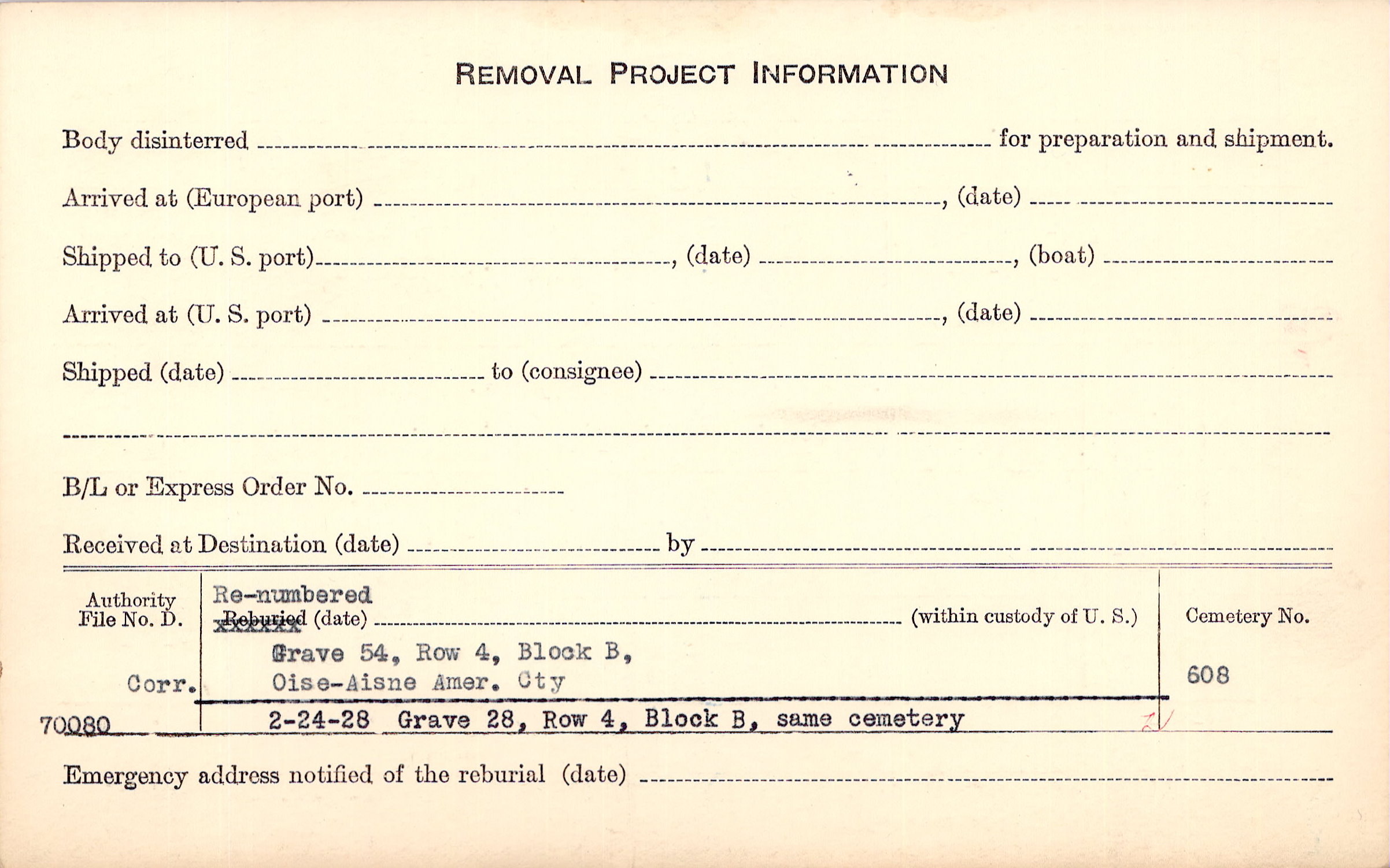 Prior Burial in Foreign Cemetery |