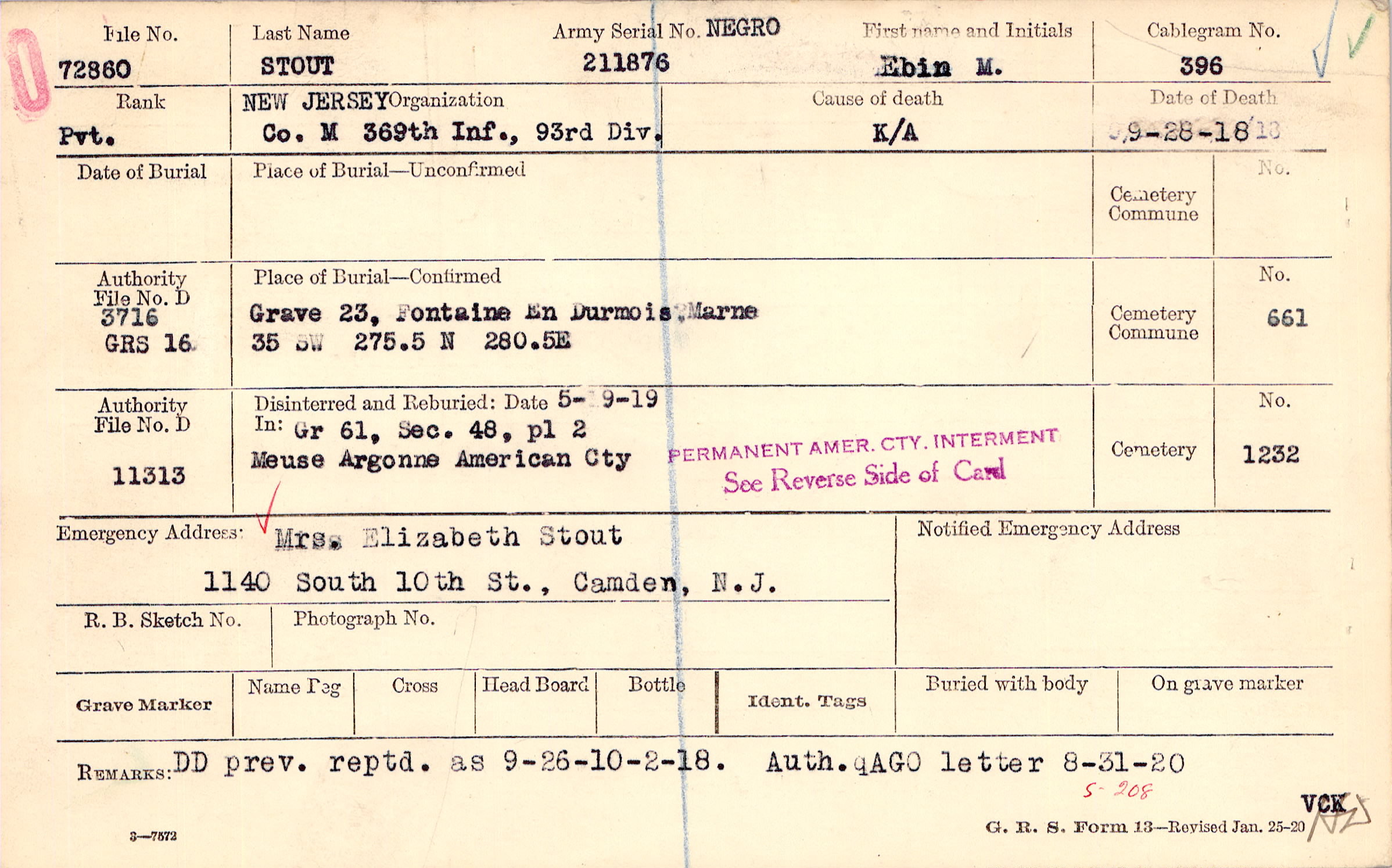 | Reburied (date): |