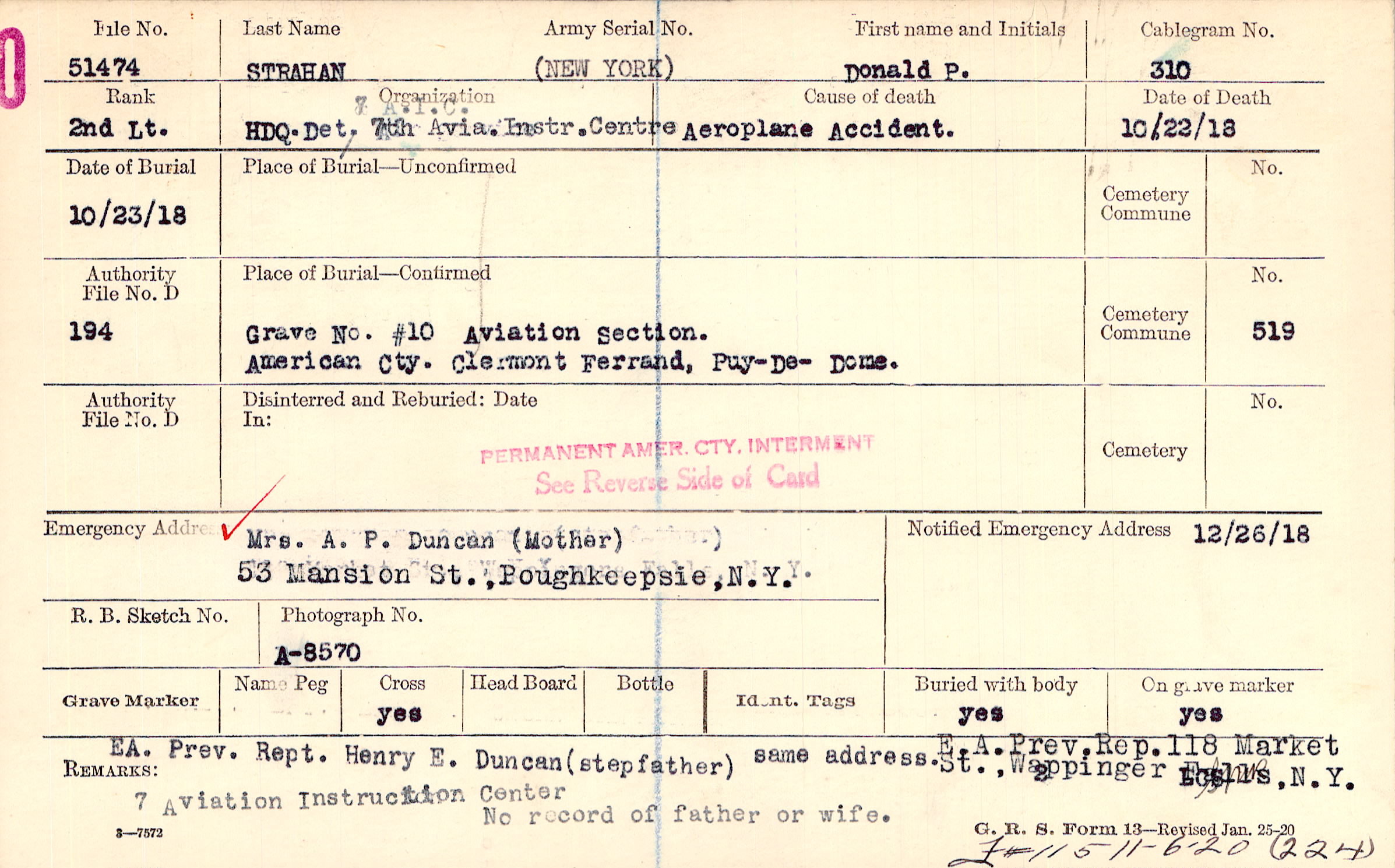 Mrs. A. P. Duncan (Mother), 53 Mansion St., Poughkeepsie, N.Y.