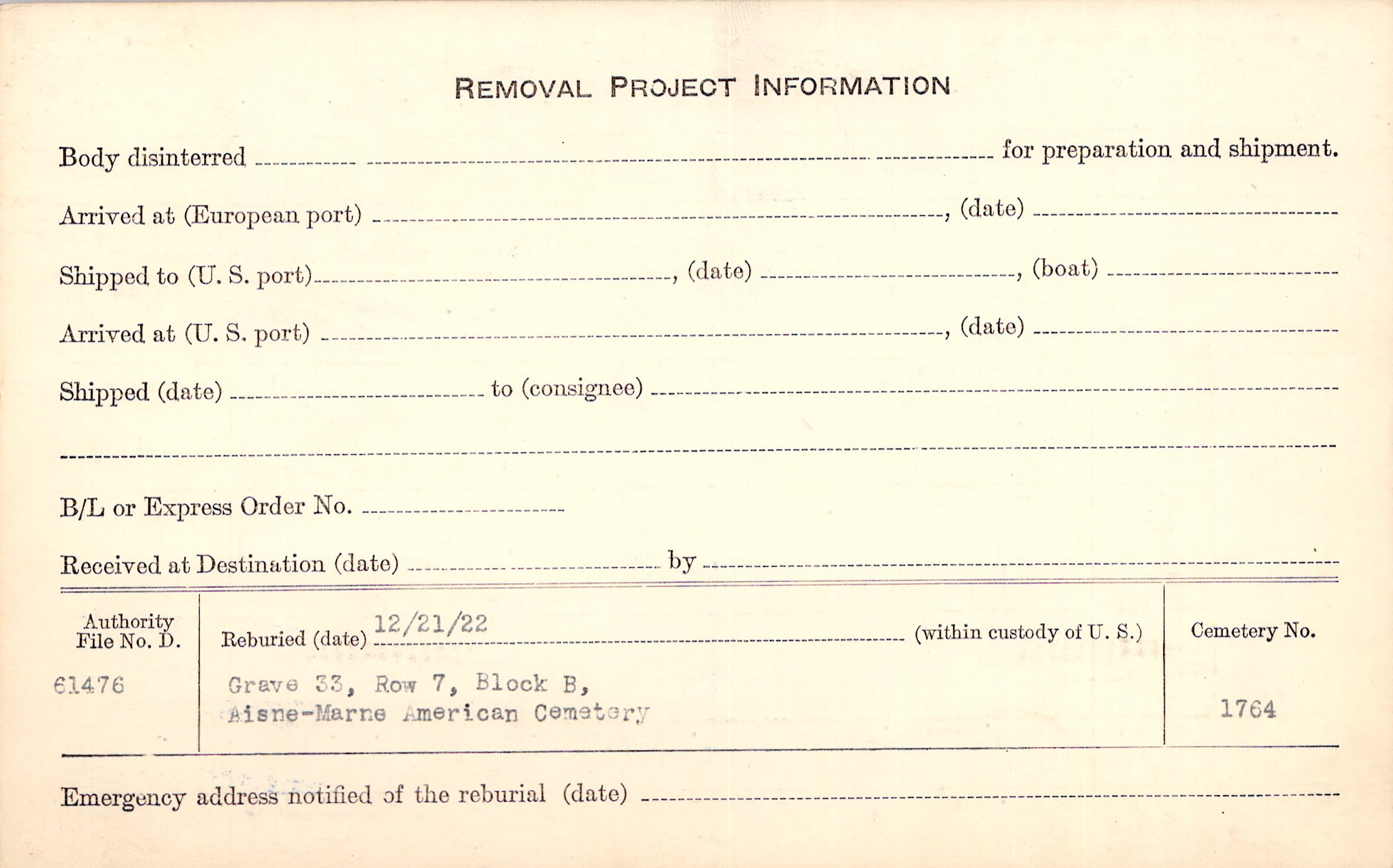 | Permanent Burial in Foreign Cemetery |