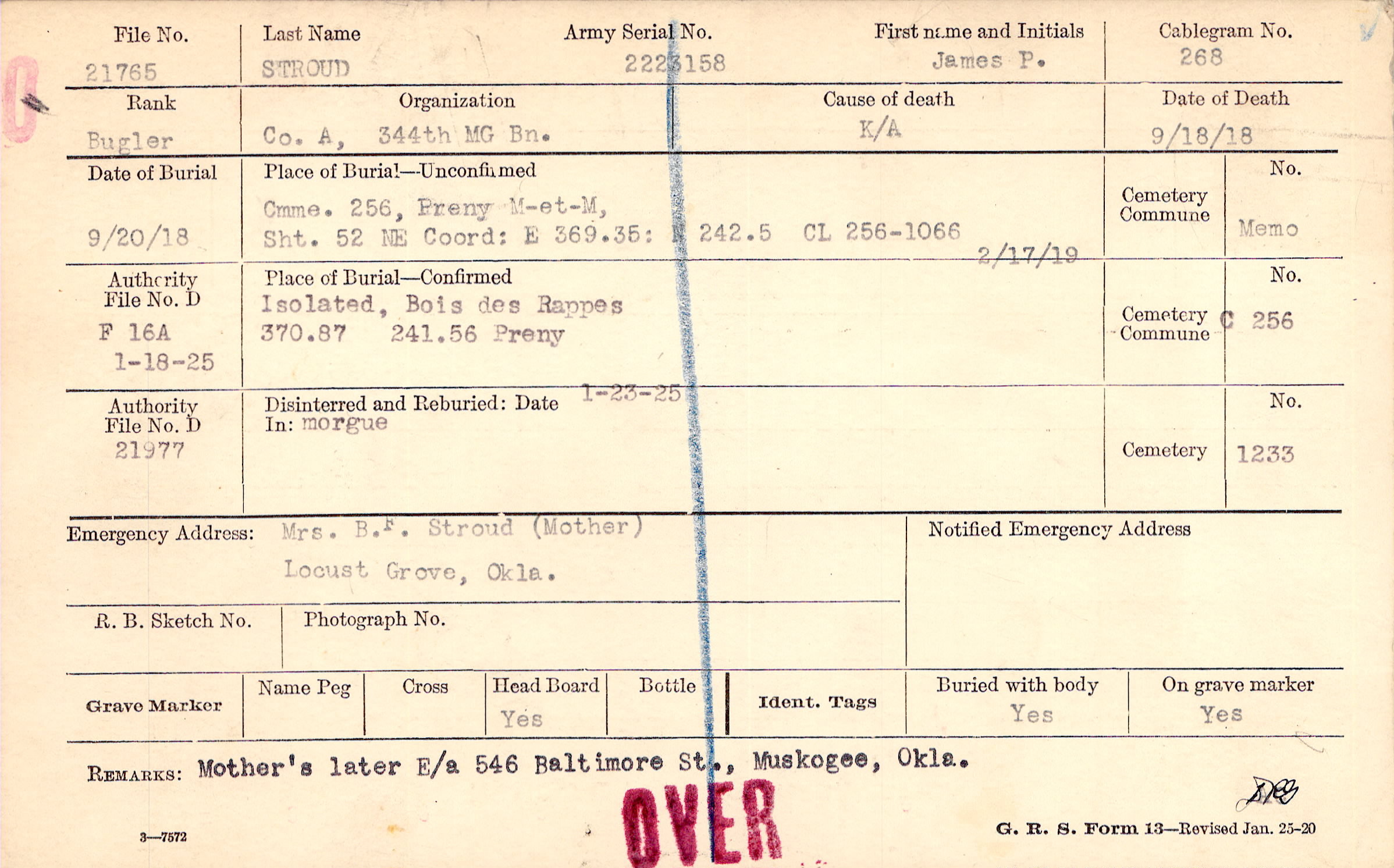 Mother's later E/a 546 Baltimore St., Muskogee, Okla.