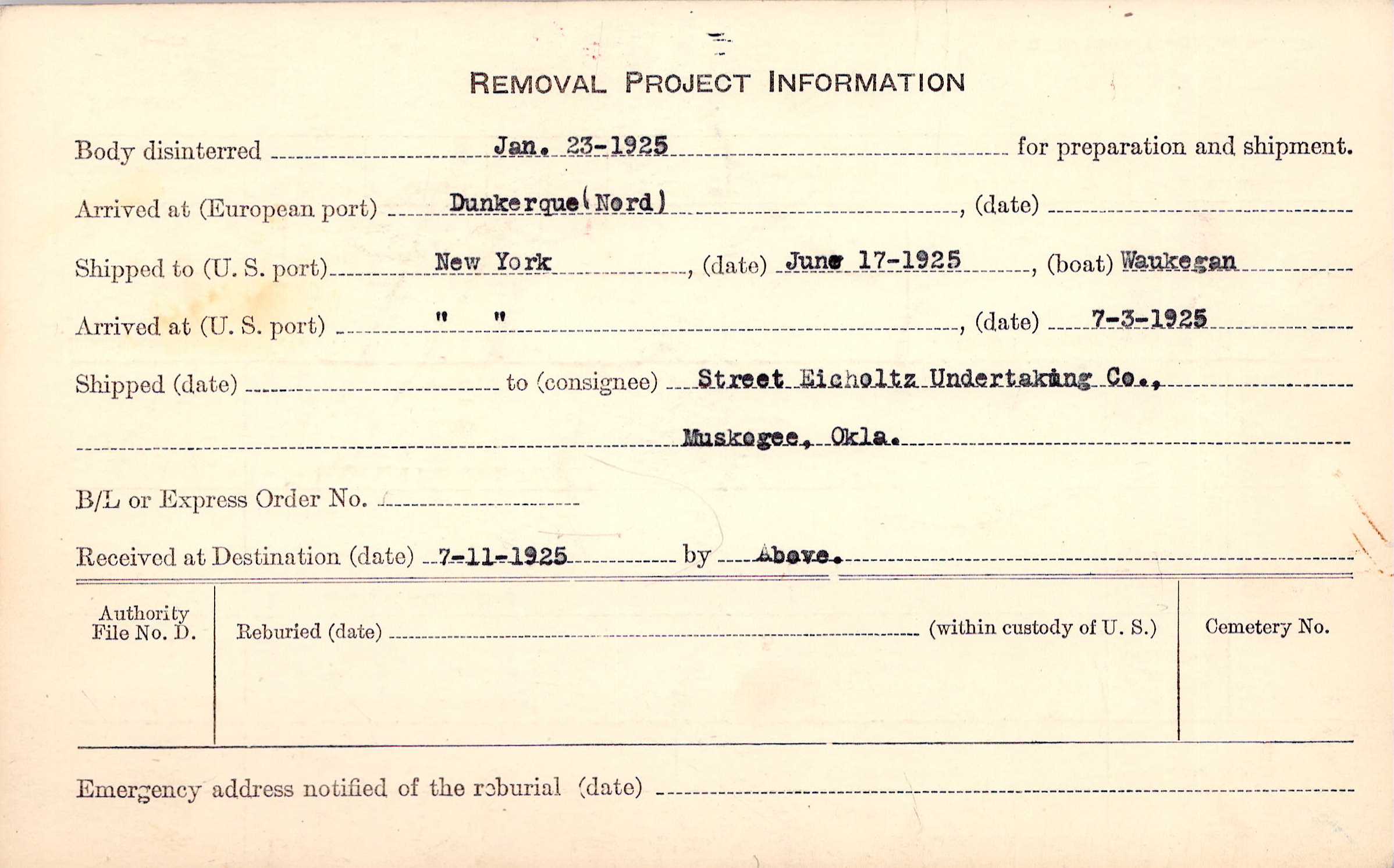 to Street Eicholtz Undertaking Co., Muskogee, Okla.
