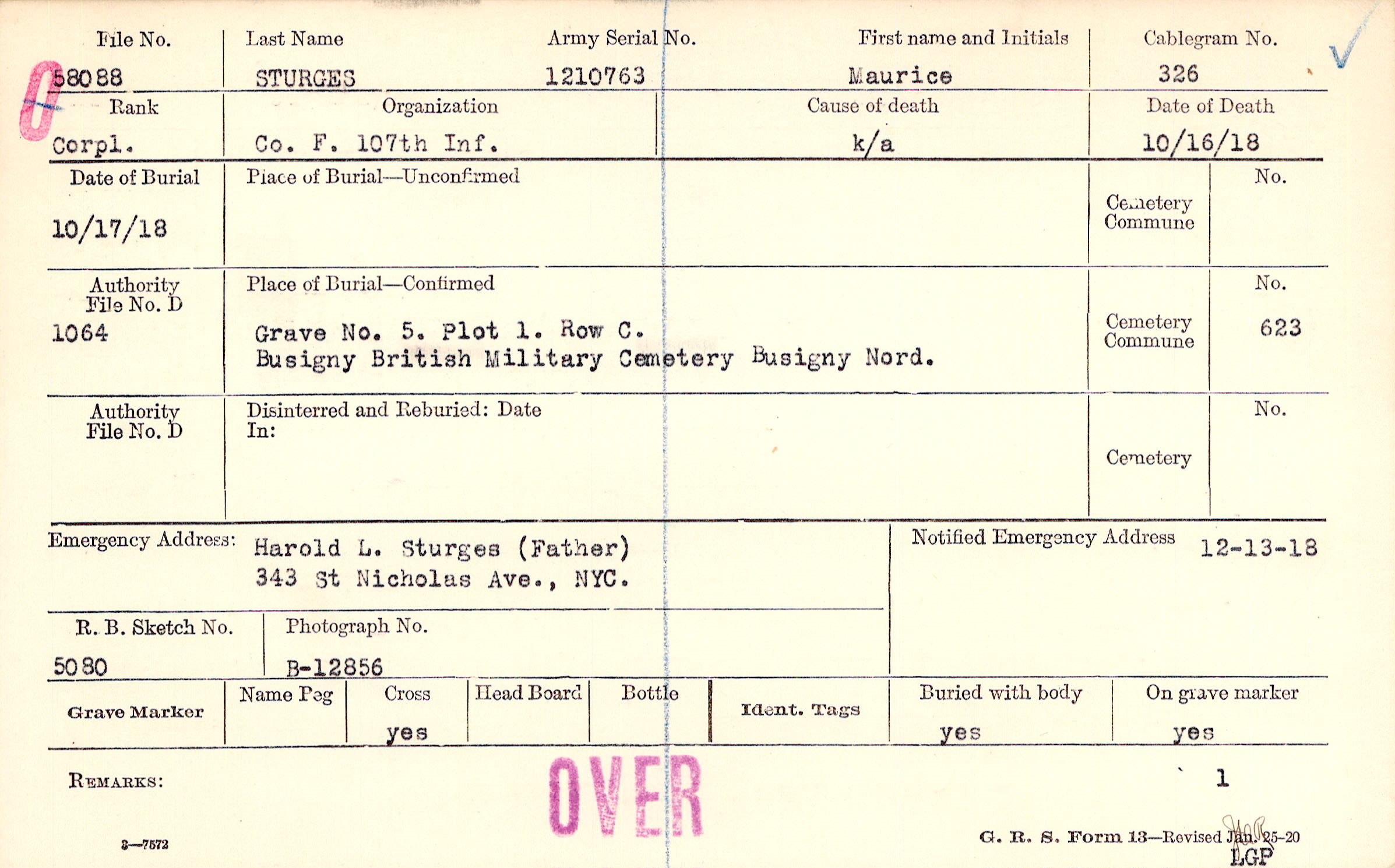Harold L. Sturges (Father), 343 St Nicholas Ave., NYC.