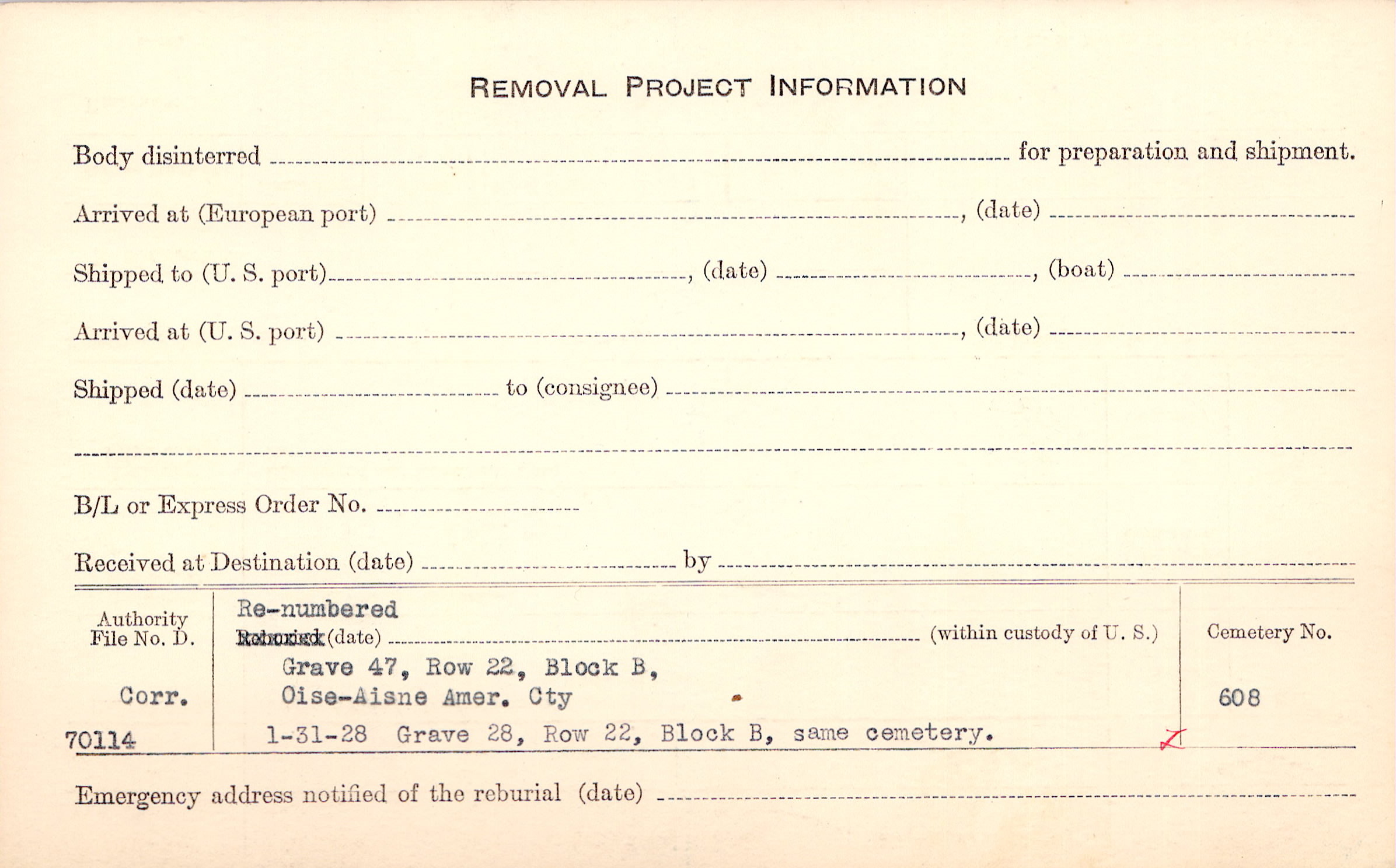 Grave #8, AMerican B/A/, Les, Pres Farm, Chery-Chartreuve, Aisne.