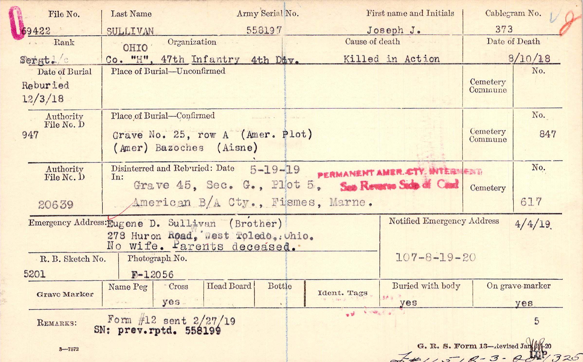Reburied 12/3/1918