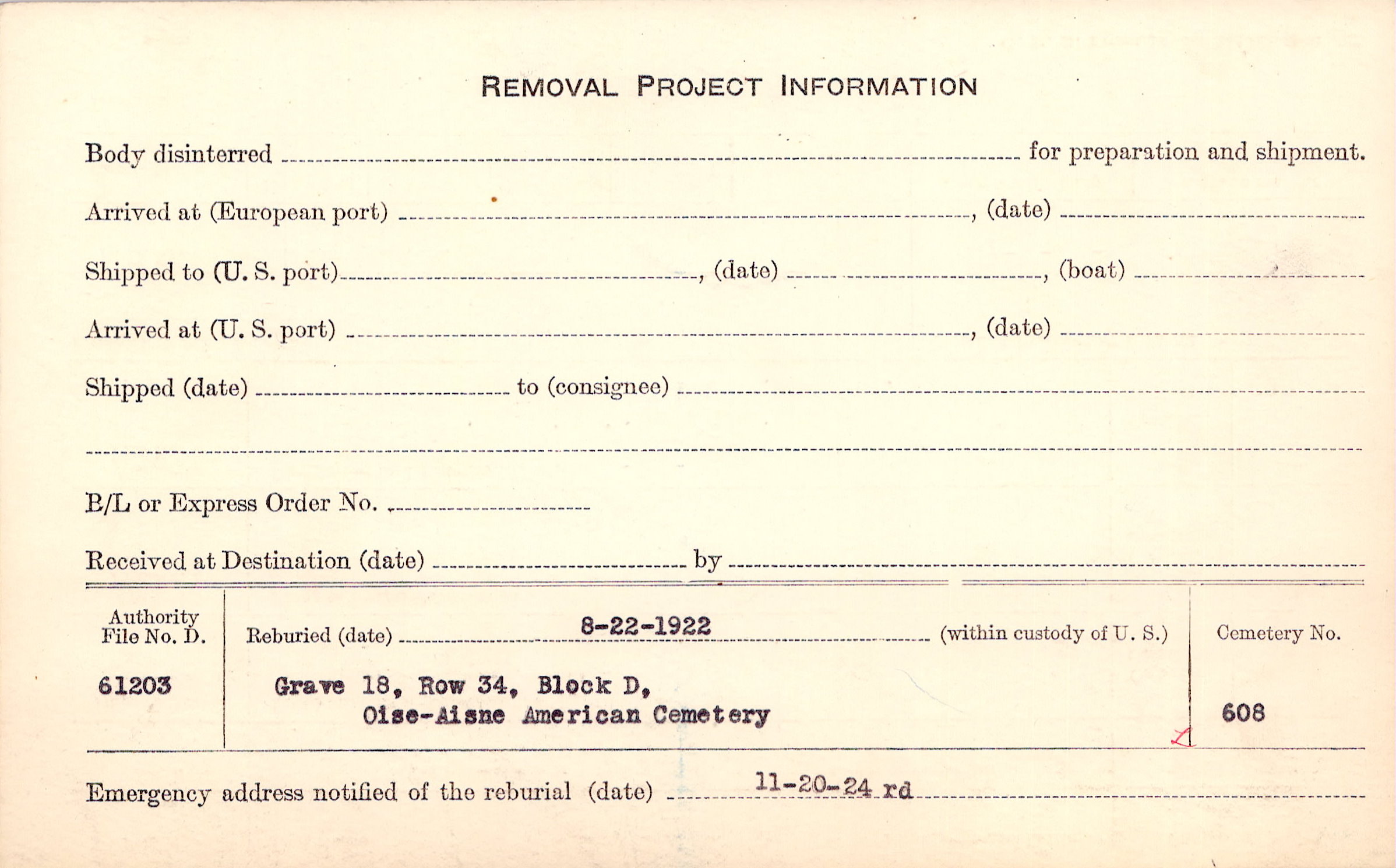 | Permanent Burial in Foreign Cemetery |