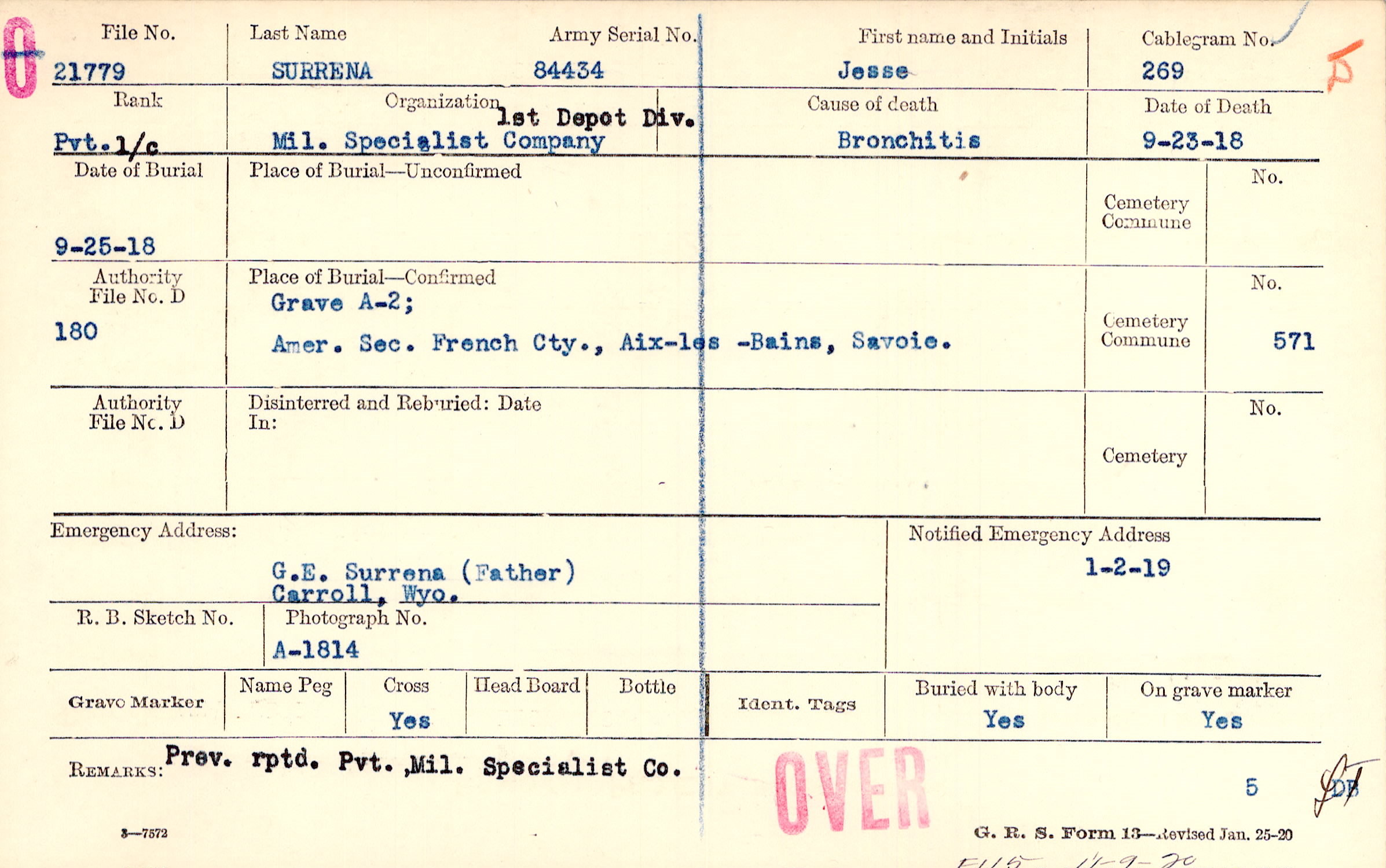 Grave A-2, Amer. Sec. French Cty., Aix-les-Bains, Savoie
