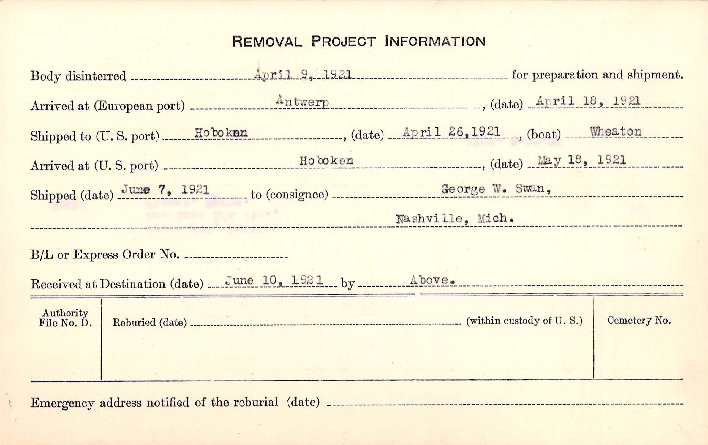Harry Swan, Brother, RFD #5, Battle Creek, Mich.