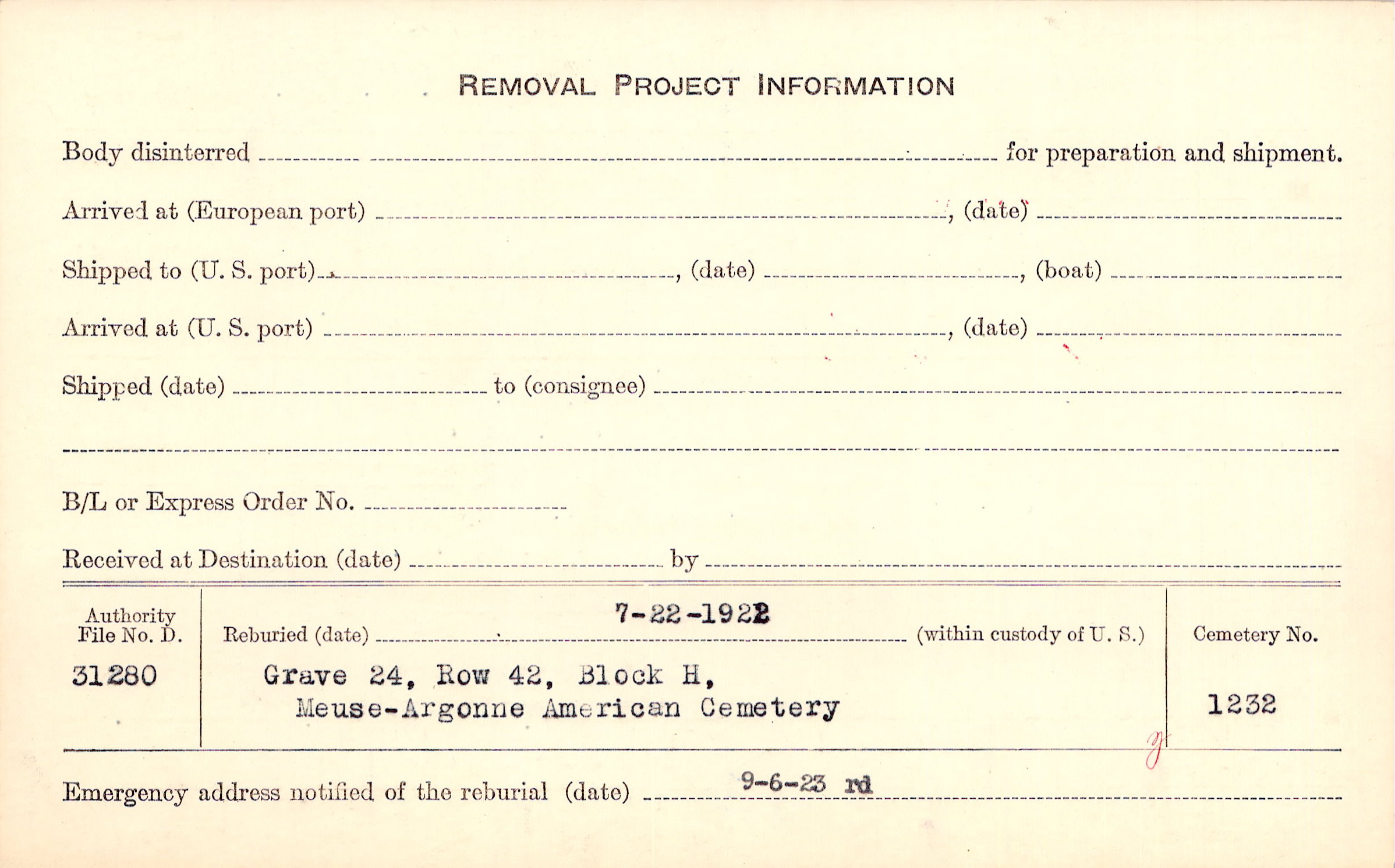 | Permanent Burial in Foreign Cemetery |
