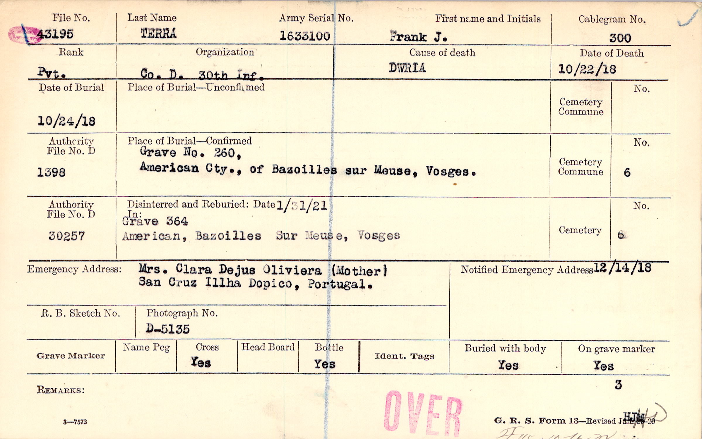 Grave 260, American Cty., of Bazoilles sur Meuse, Vosges.