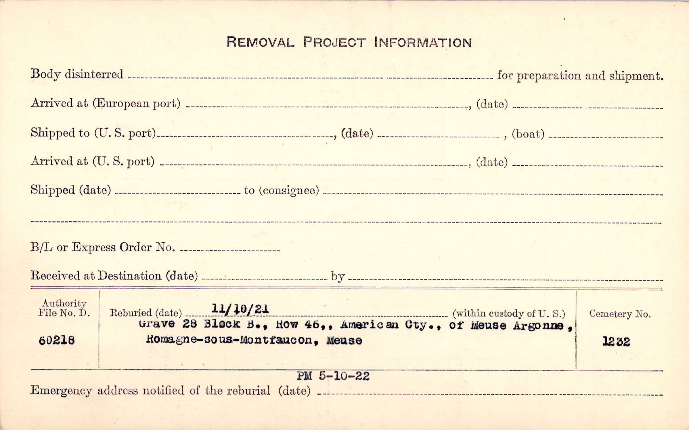 | Permanent Burial in Foreign Cemetery |