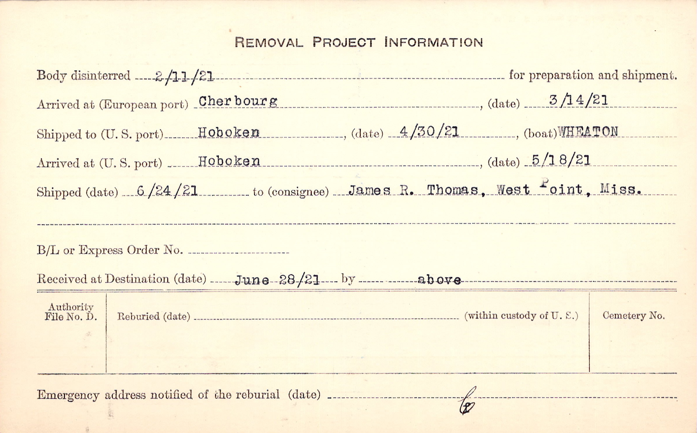Mr. James. A. Thomas (Brother), RFD#2 Box 69, Cedar Bluff, Miss.