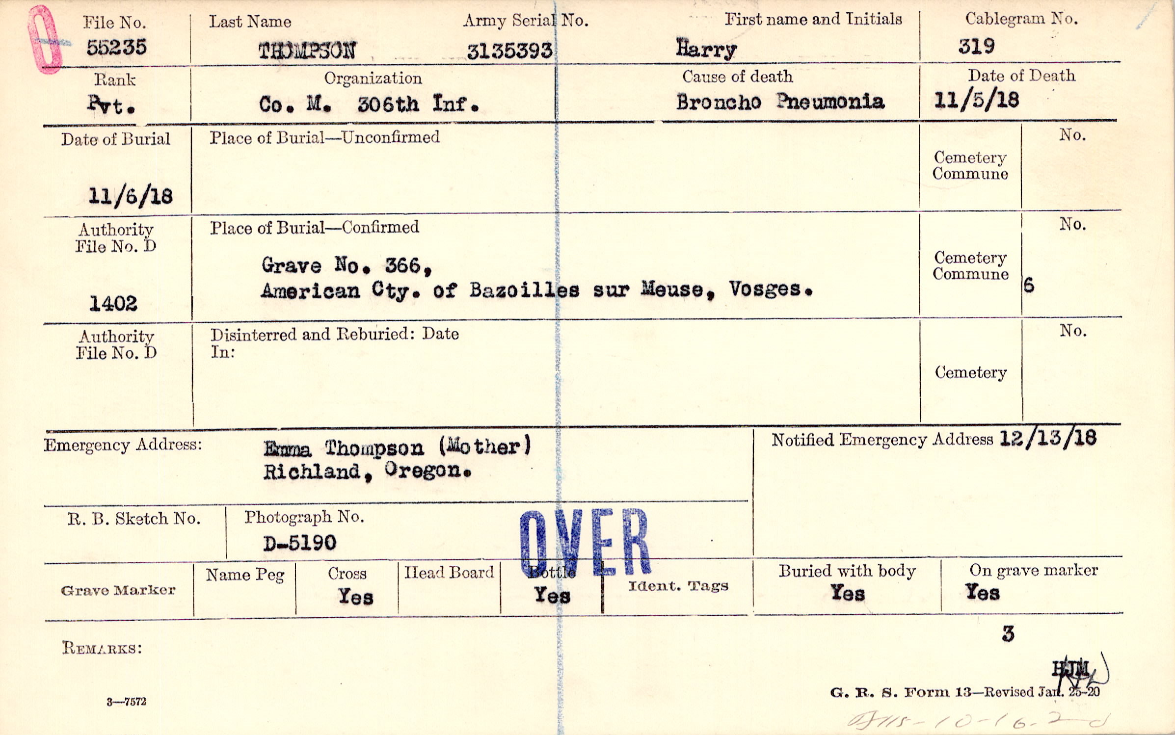 Grave 366, American Cty., of Bazoilles sur Meuse, Vosges.