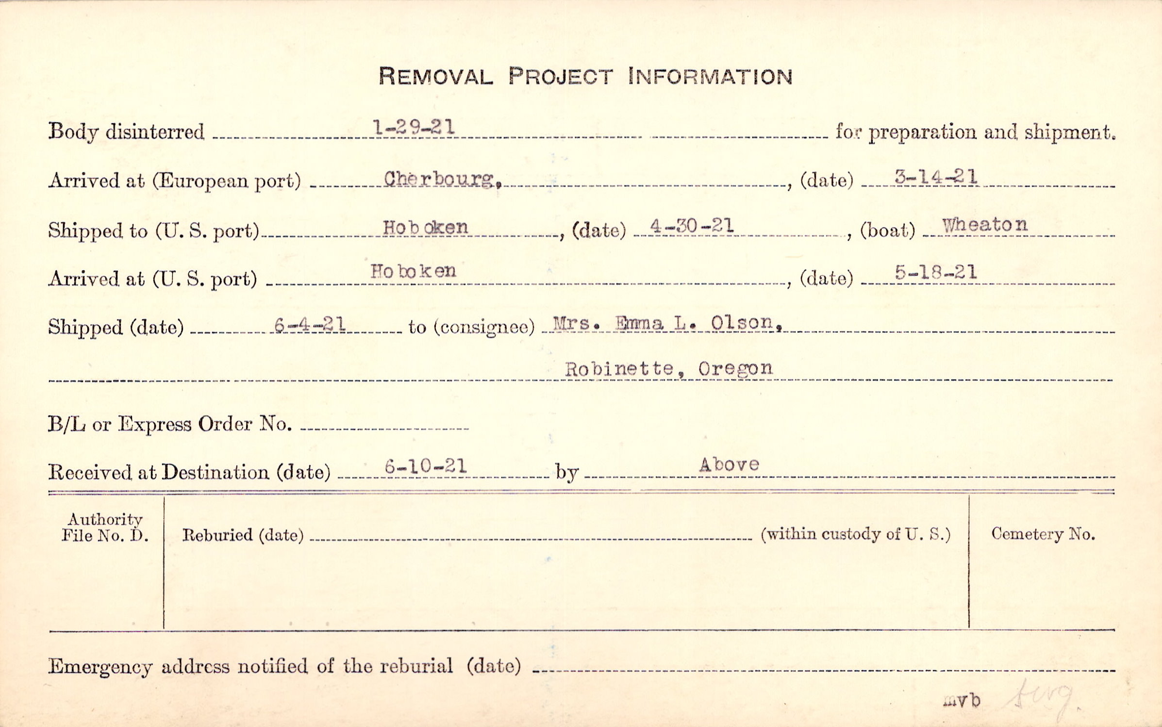 to Mrs. Emma L. Olson, Robinette, Oregon