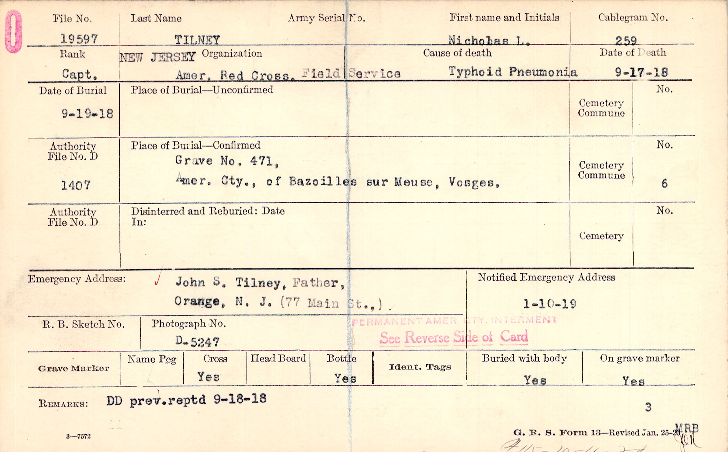 Grave 471, Amer. Cty., of Bazoilles sur Meuse, Vosges
