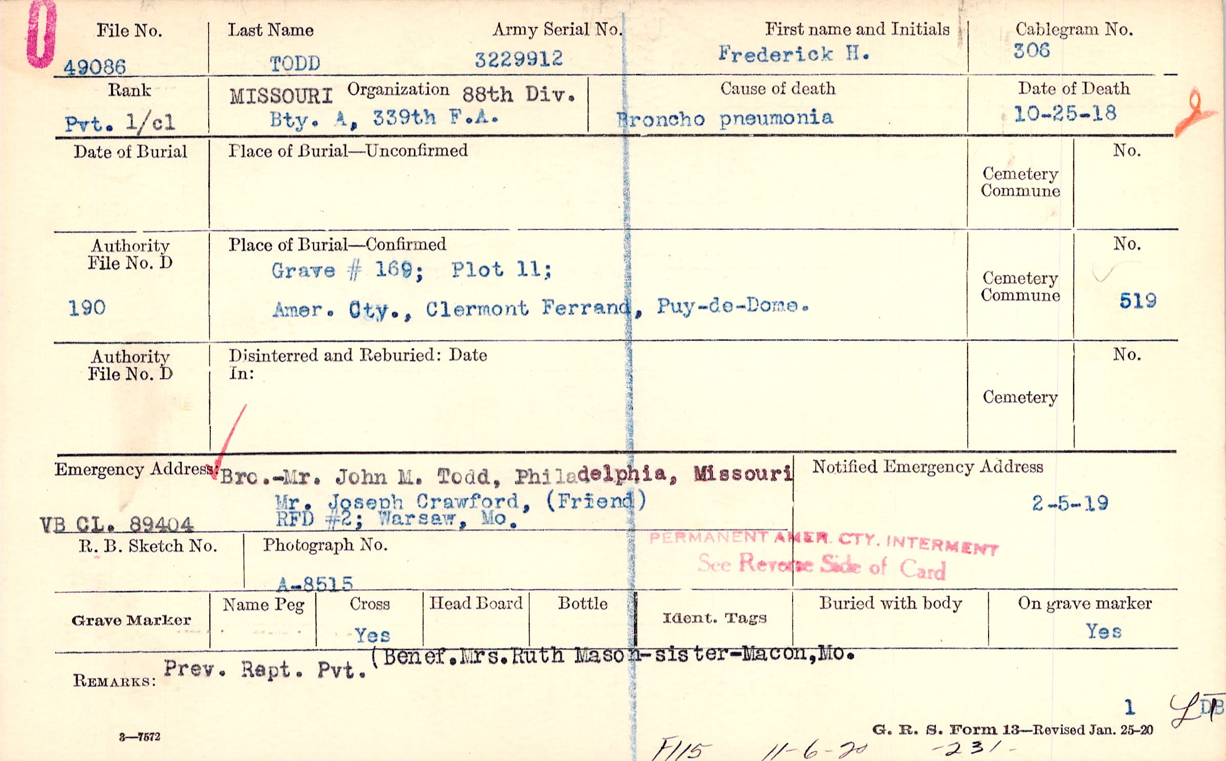 Prev. Rept. Pvt. (Benef. Mrs. Ruth Mason-sister-Macon, Mo., F115 11-6-20 - 231