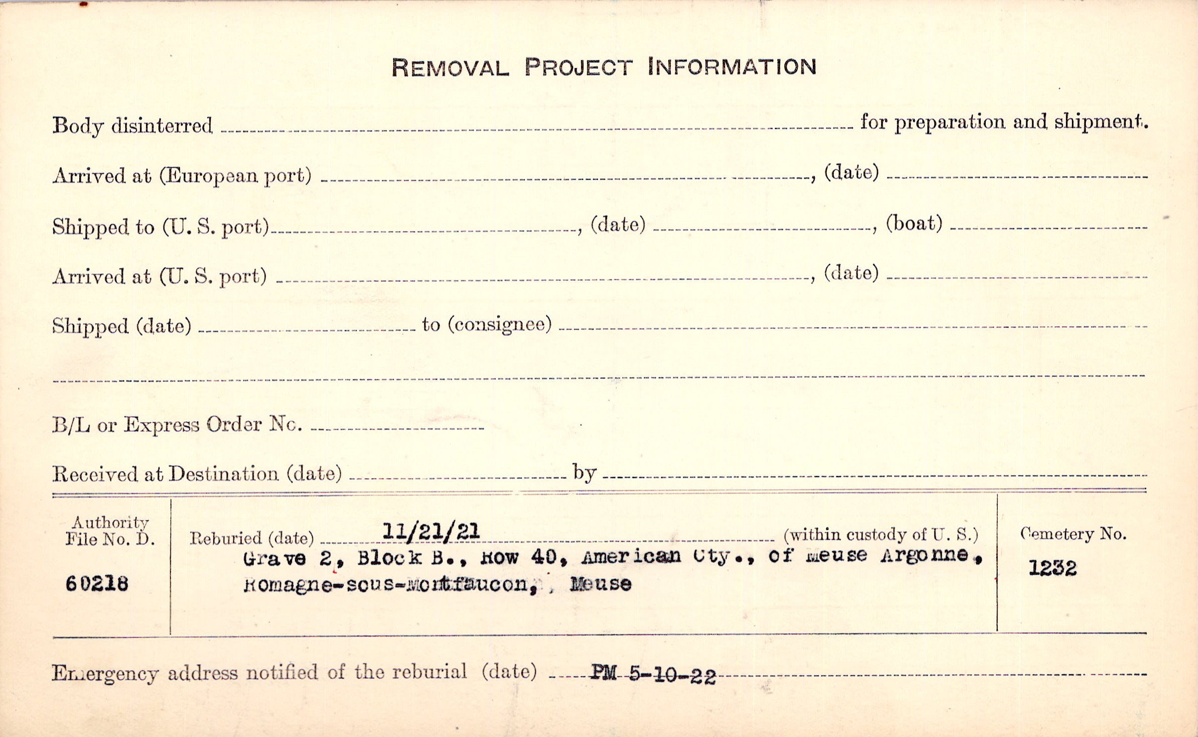 | Permanent Burial in Foreign Cemetery |