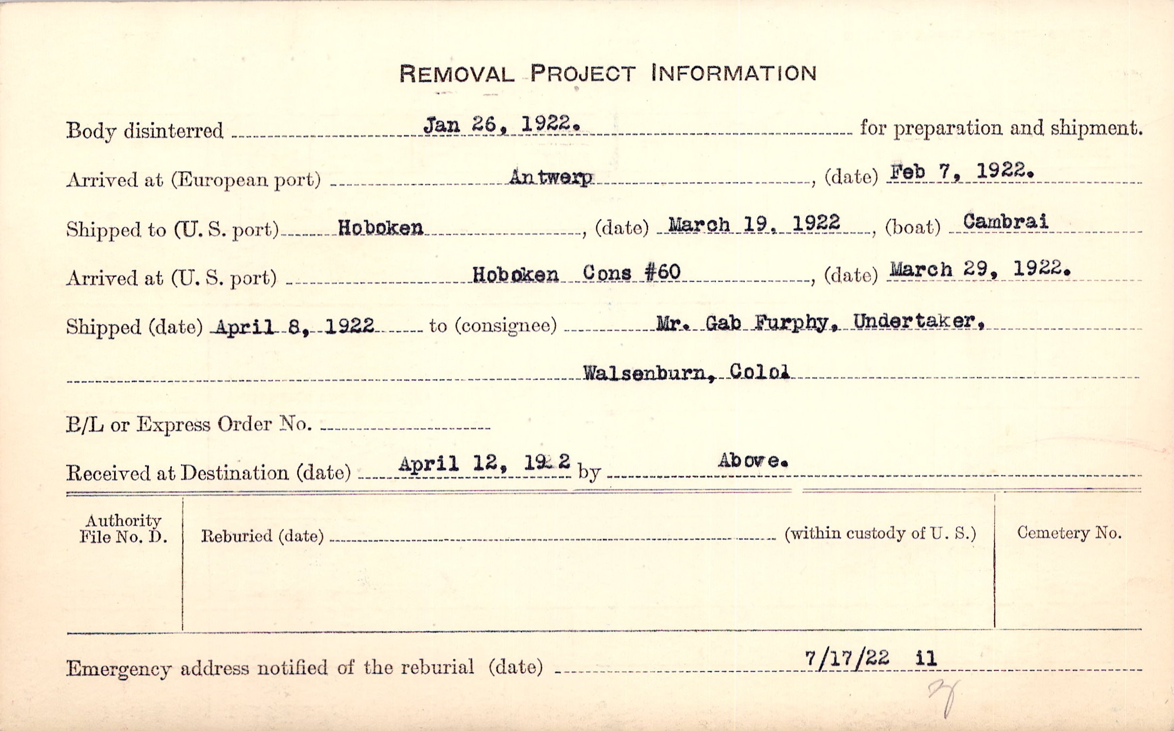 to Mr. Gab Furphy, Undertaker, Walsenburn, Colo.