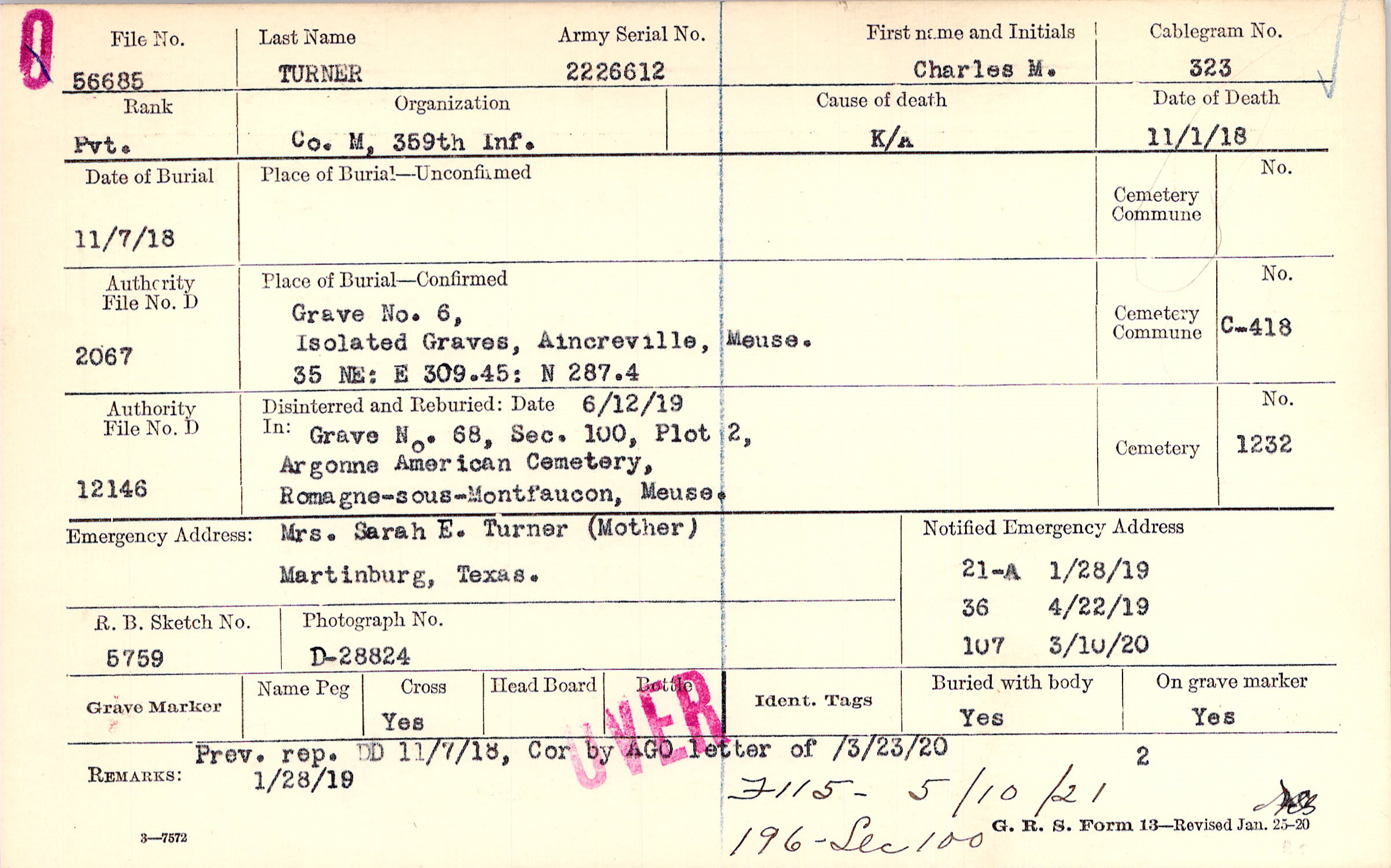 | Reburied (date): |
