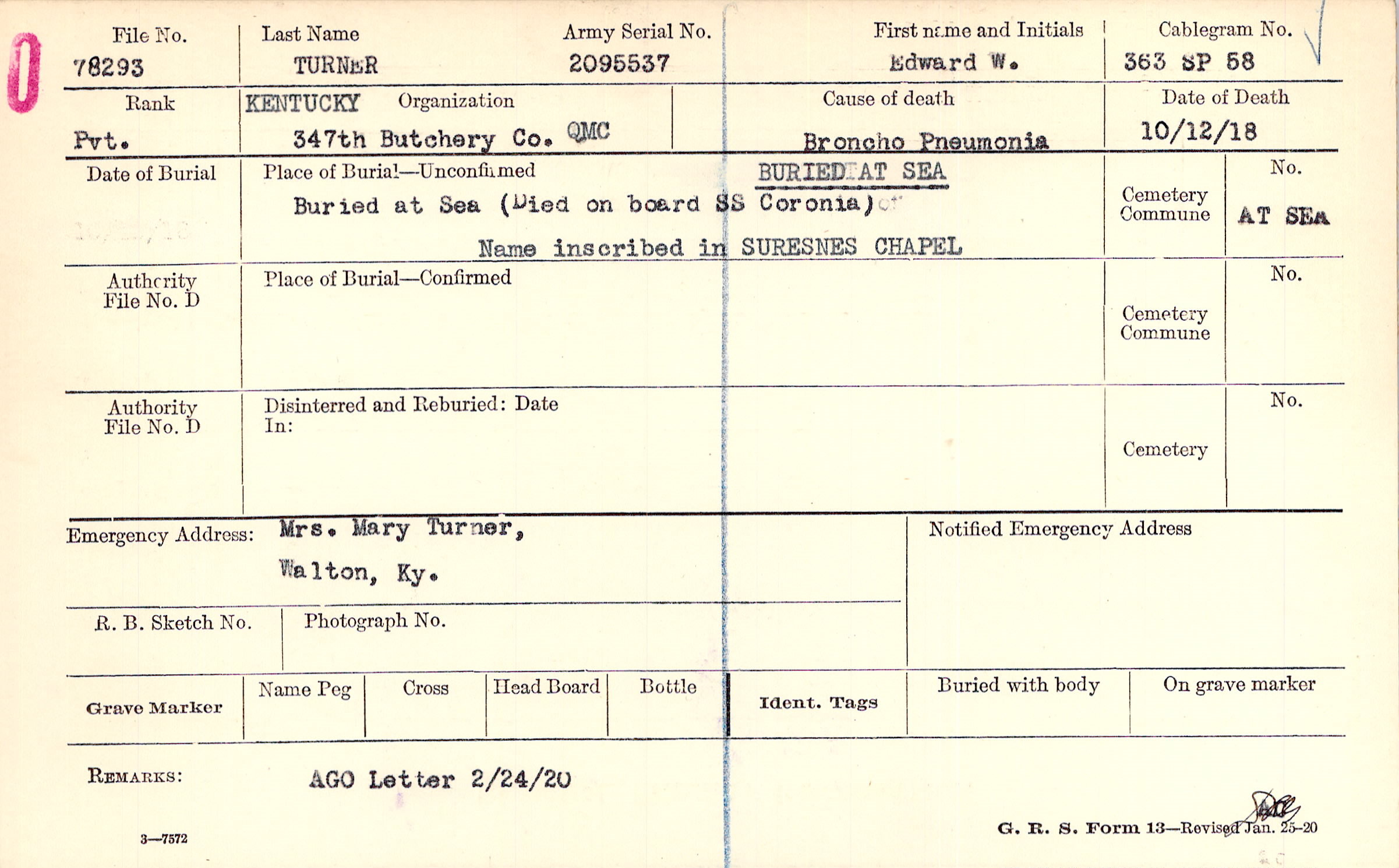 Mrs. Mary Turner,, Walton, Ky.