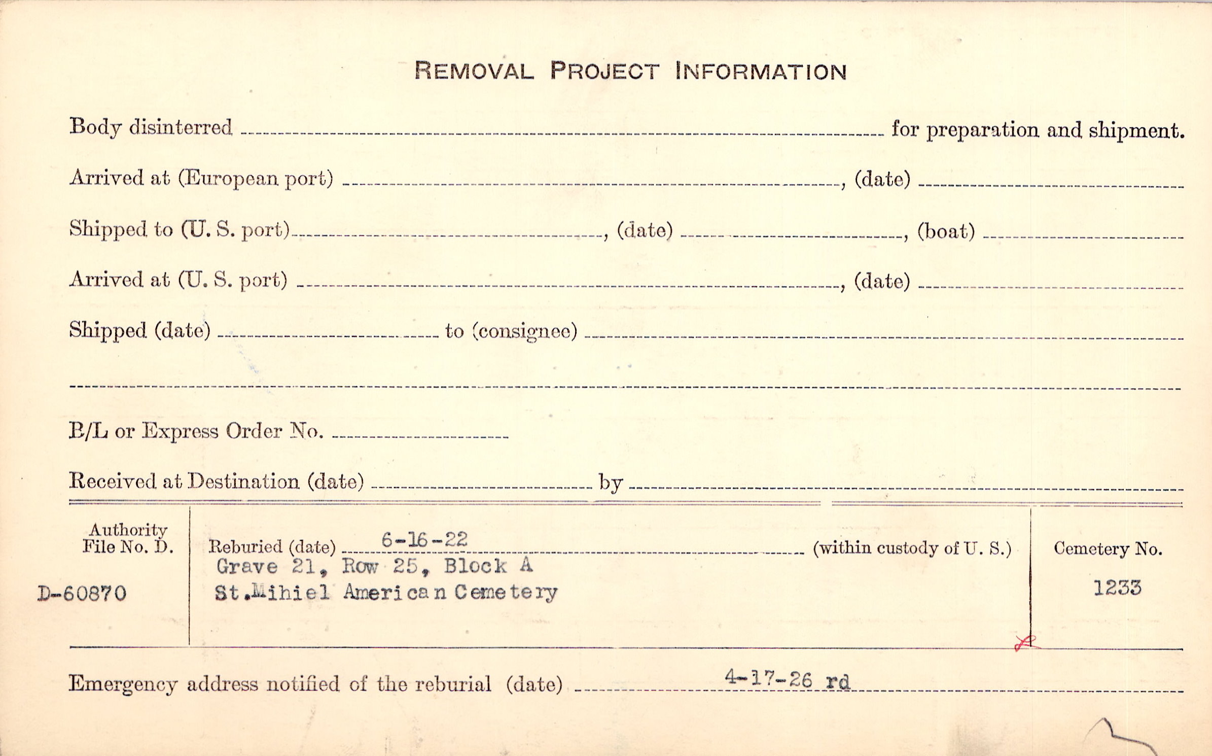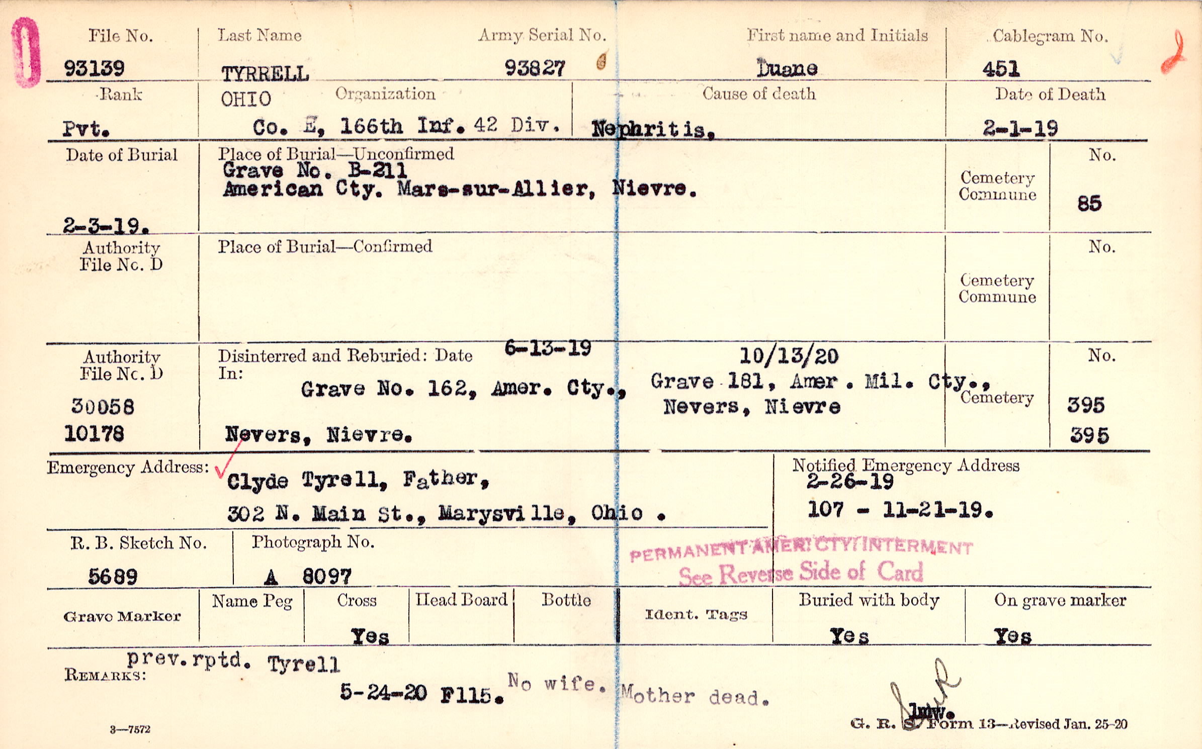 Grave No. B-211, American Cty., Mars-sur-Allier, Nievre.