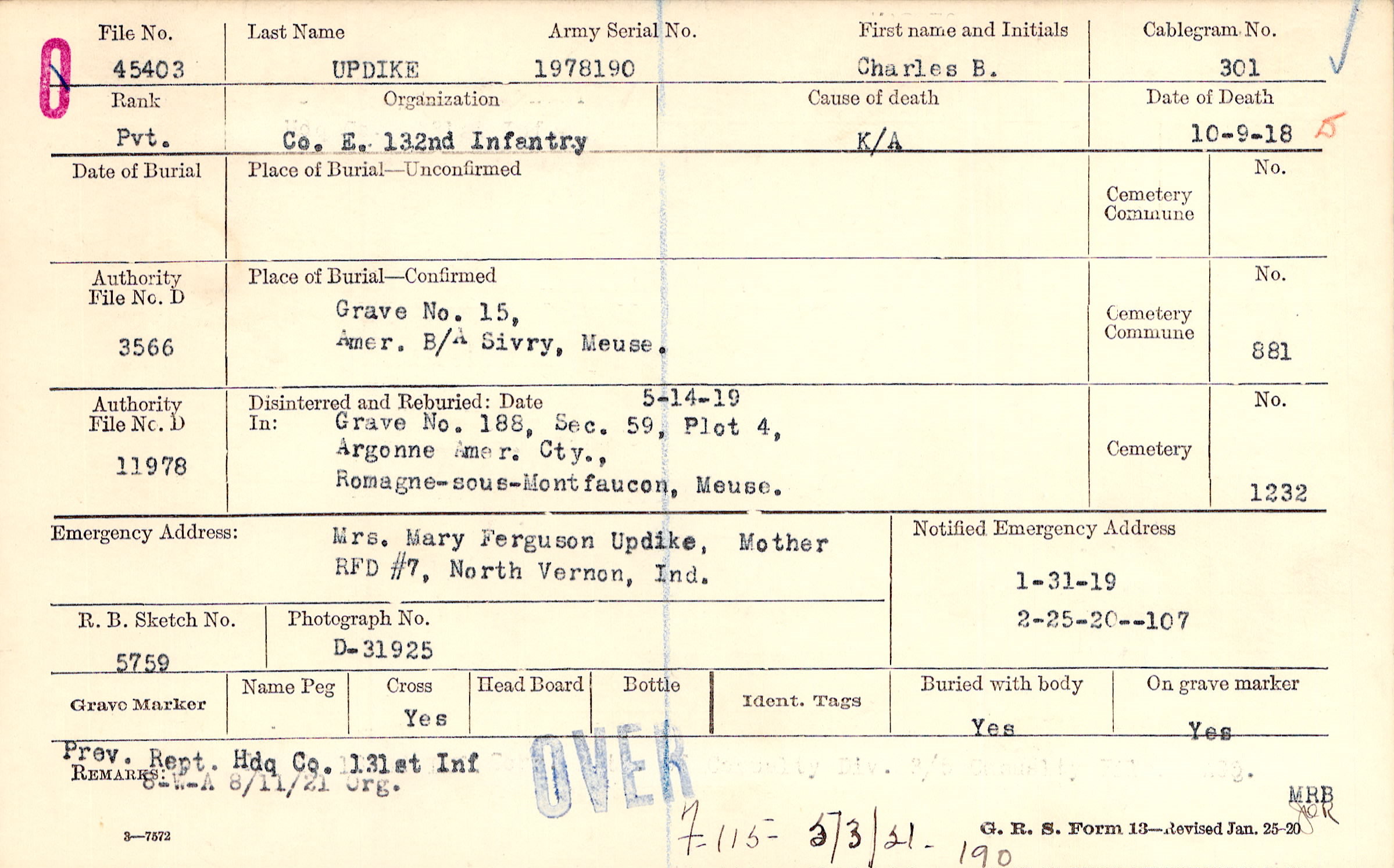 Grave 15, Amer. B/A, Sivry, Meuse.