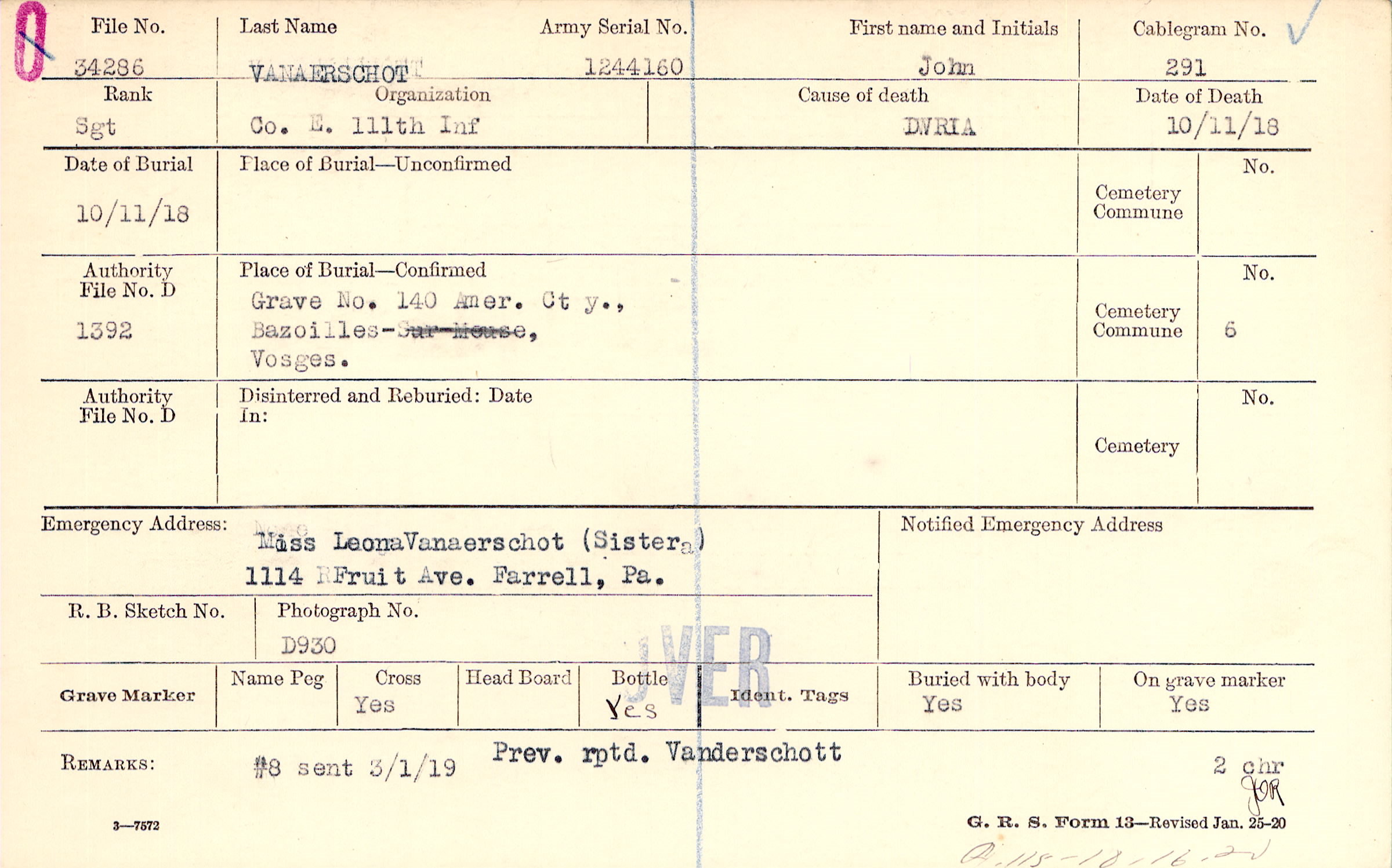 Grave 140, Amer. Cty., Bazoilles, Vosges