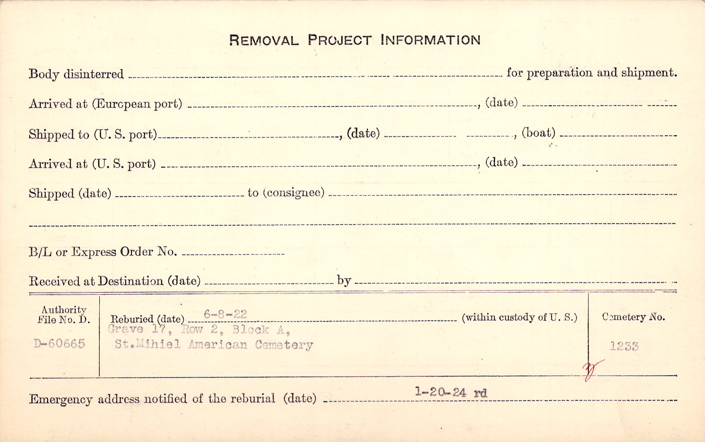 | Permanent Burial in Foreign Cemetery |