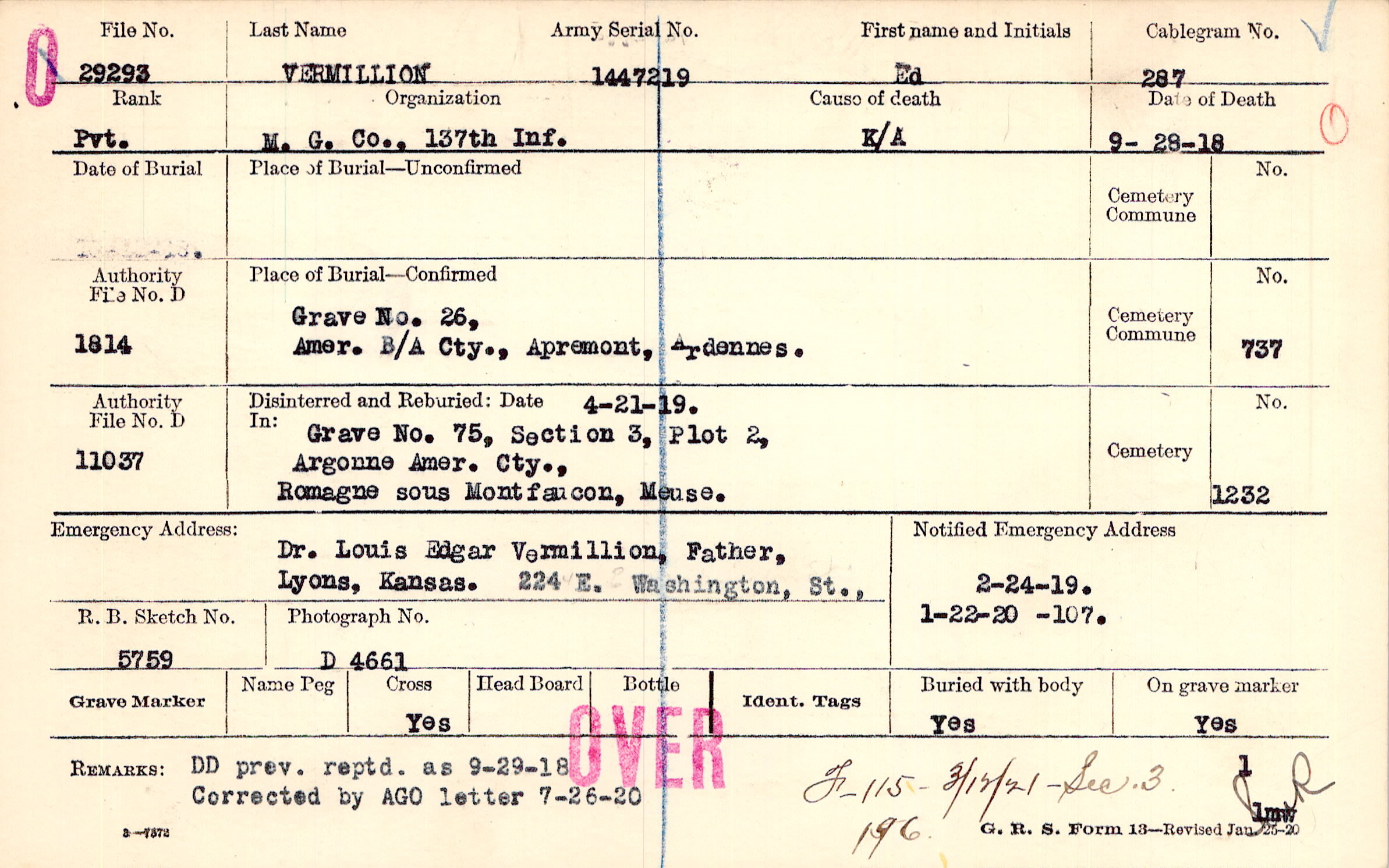 Grave 26, Amer. B/A Cty., Apremont, Ardennes