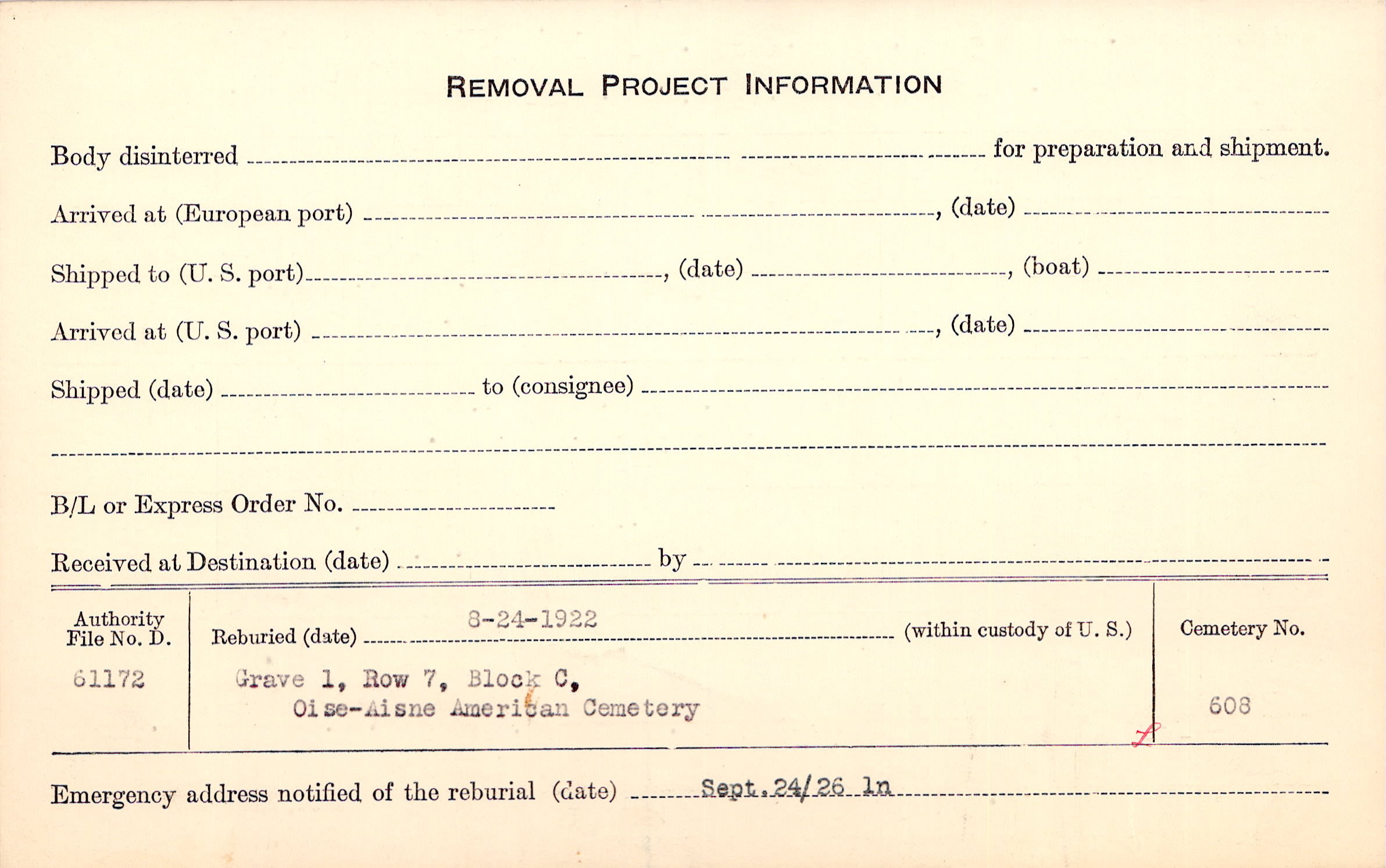 | Permanent Burial in Foreign Cemetery |