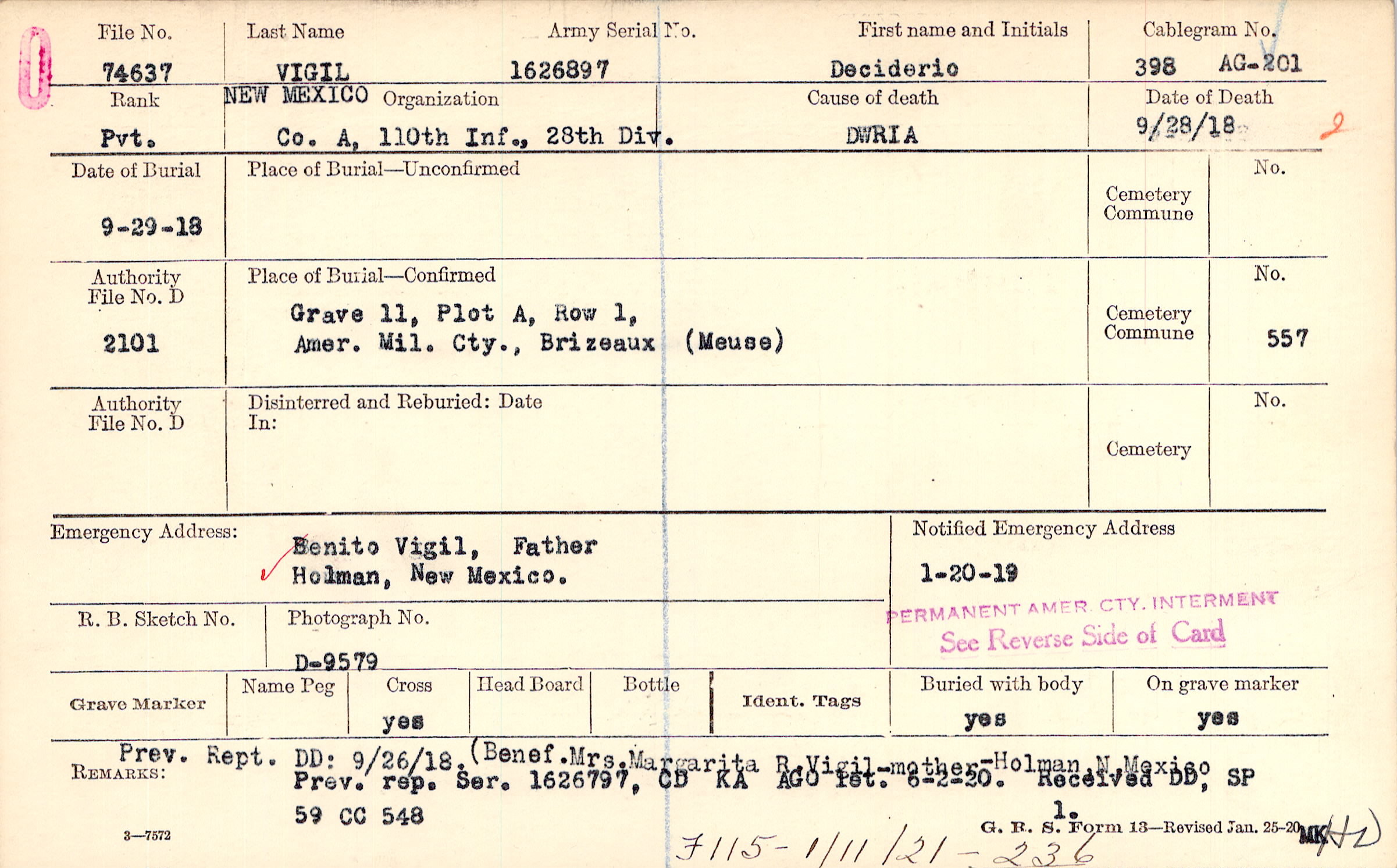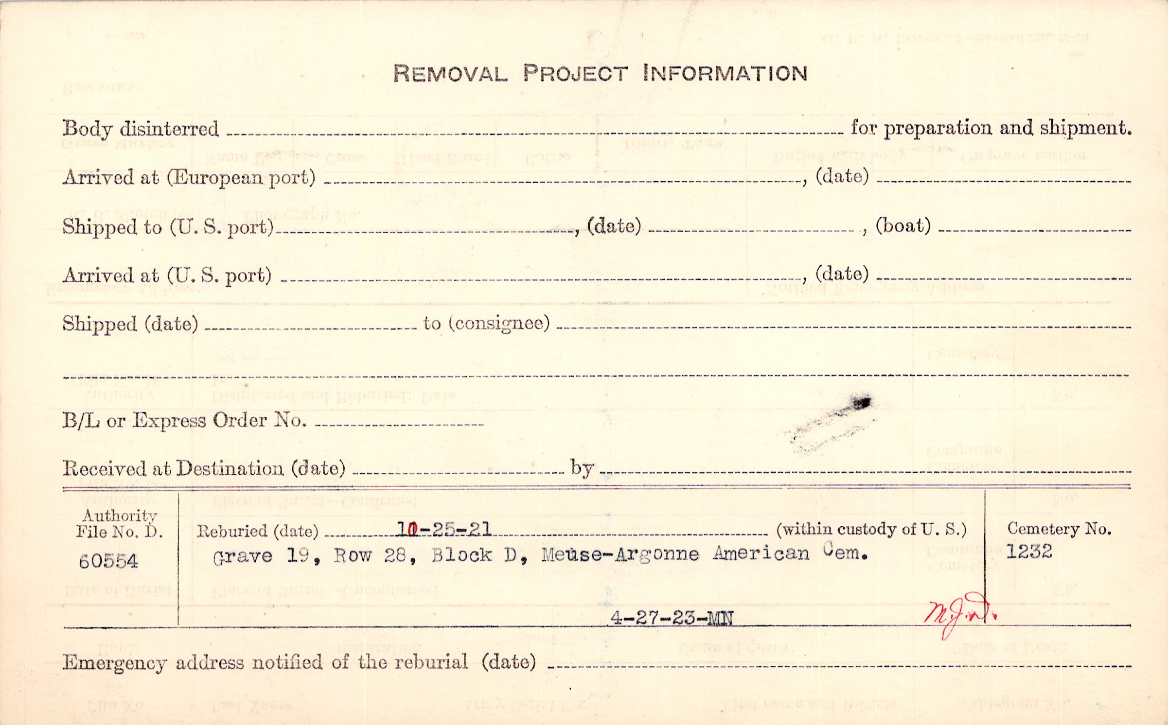 | Permanent Burial in Foreign Cemetery |