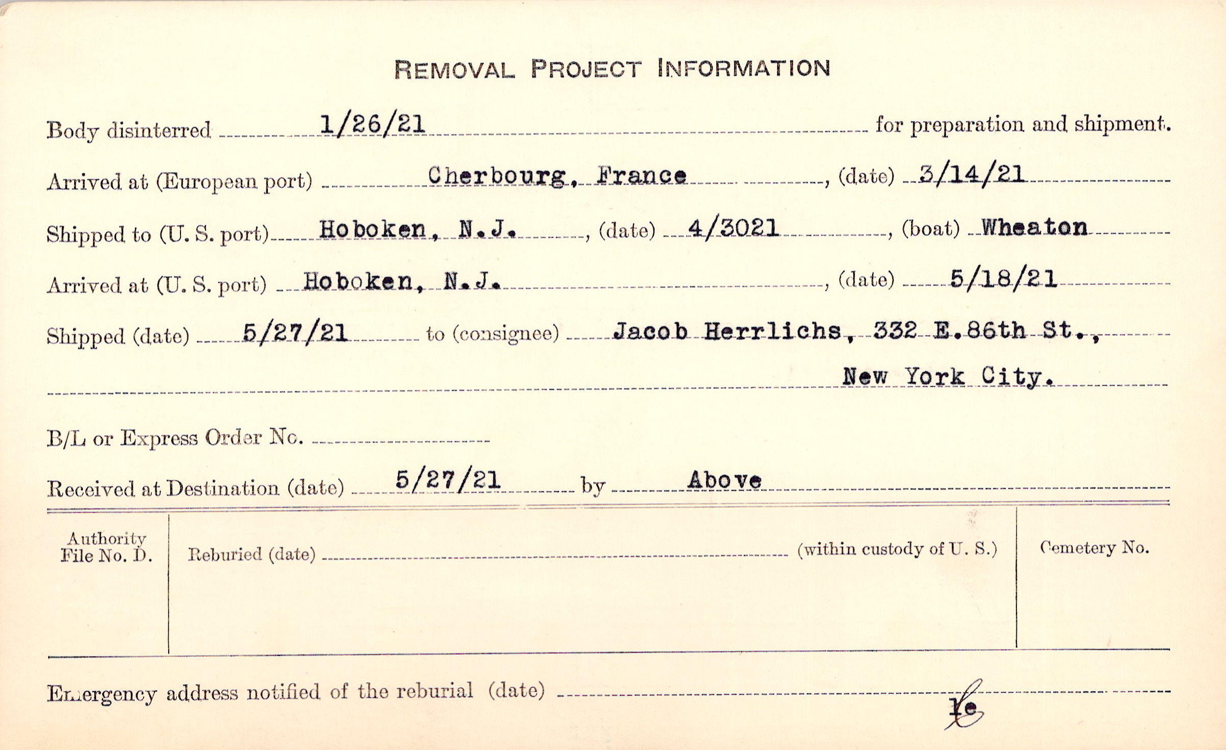 to Jacob Herrlichs, 332 E. 86th St., New York City.