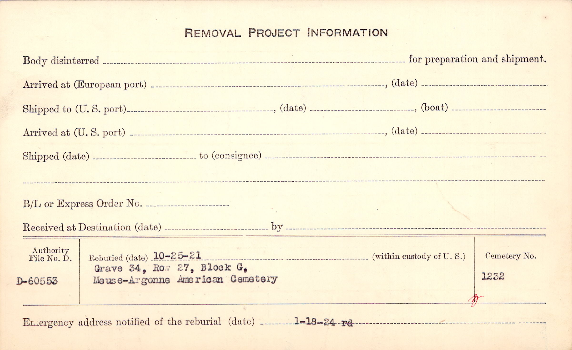 | Permanent Burial in Foreign Cemetery |